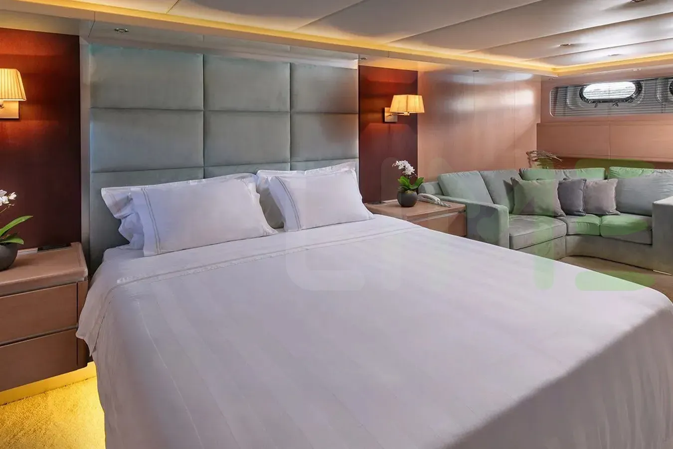 With a gross tonnage of 235, the MAGIX yacht for charter provides ample interior space for enjoyment. MAGIX offers accommodations for up to 10 guests in 5 lavishly appointed staterooms. She can also carry up to 7 crew onboard, including the Captain, to ensure a relaxed luxury yacht charter experience. The interior design by Eva Cadio & Co exudes a sense of luxury, seamlessly blending comfort with style.