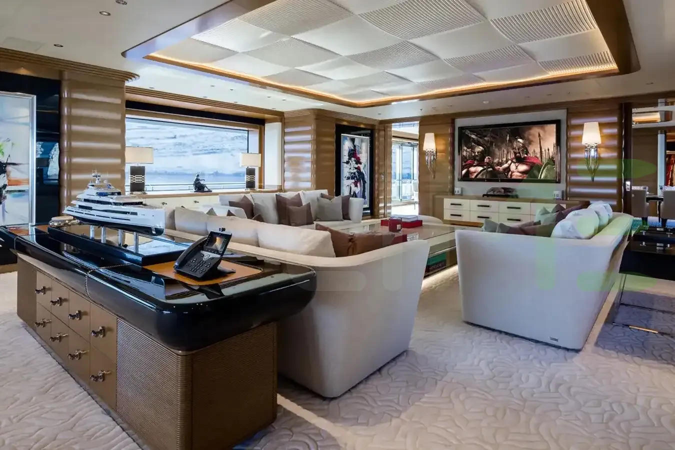 Her features include piano, spa, beauty salon, satellite communications, beach club, gym, WiFi and air conditioning.