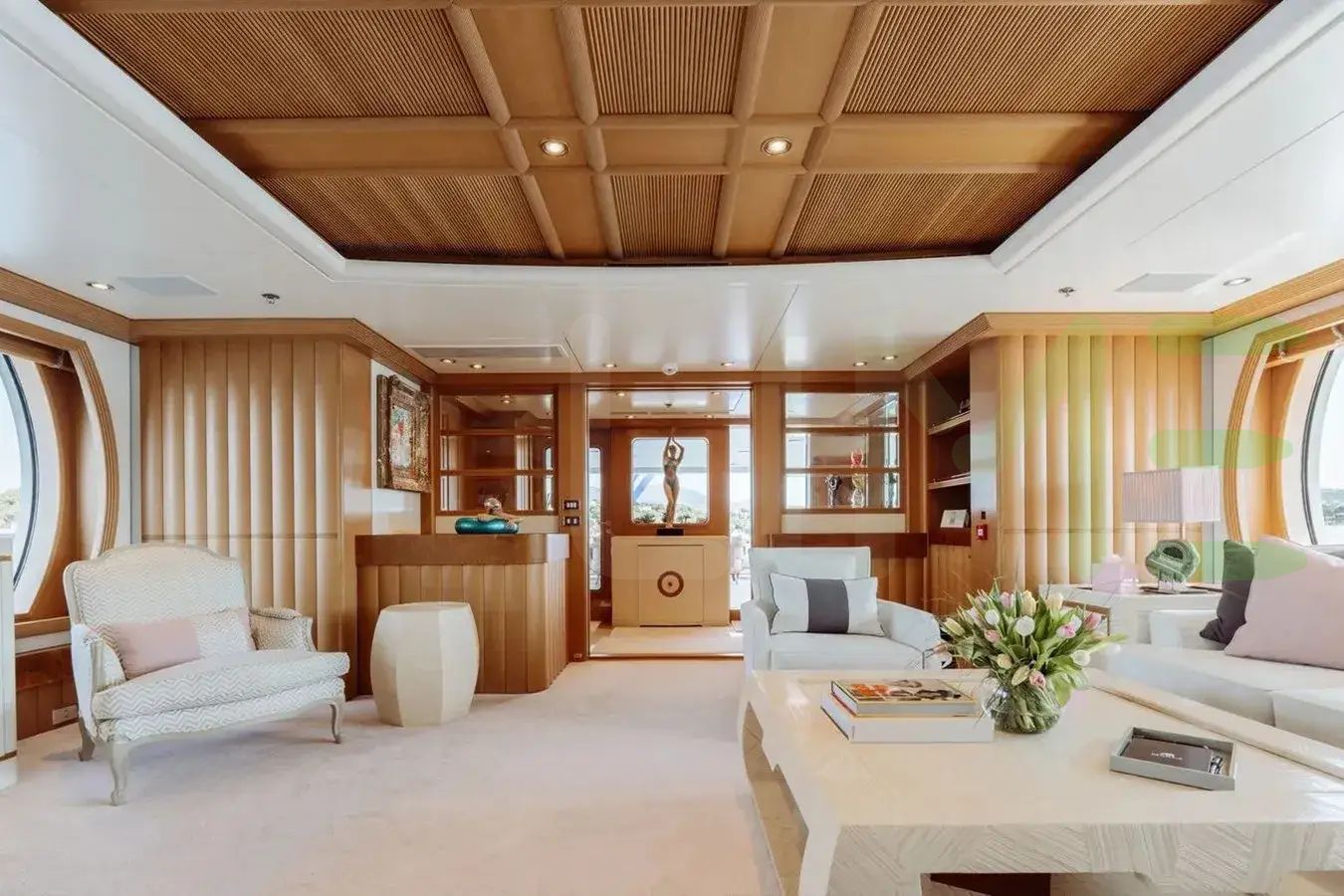 With a gross tonnage of 603, the MARLA yacht for charter provides ample interior space for enjoyment. MARLA offers accommodations for up to 11 guests in 6 lavishly appointed staterooms. She can also carry up to 12 crew onboard, including the Captain, to ensure a relaxed luxury yacht charter experience. The interior design by Terence Disdale Design exudes a sense of luxury, seamlessly blending comfort with style.