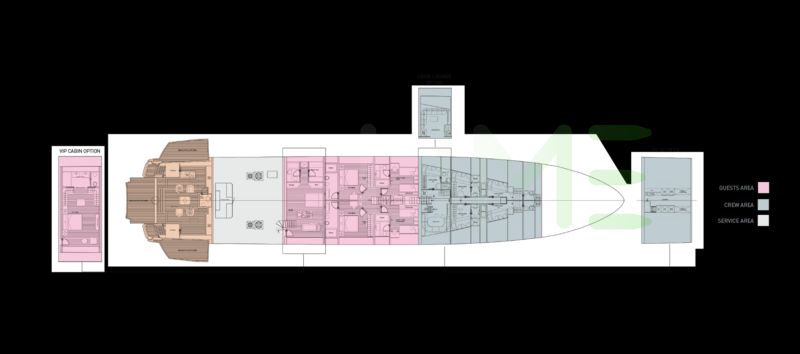 Request plans that include the layout of staterooms, guest areas, and outdoor spaces, as well as crew quarters and work areas.