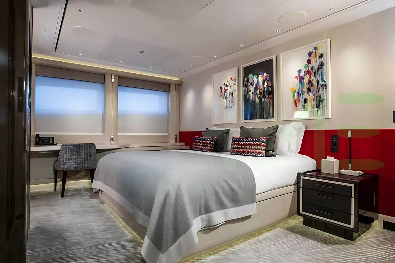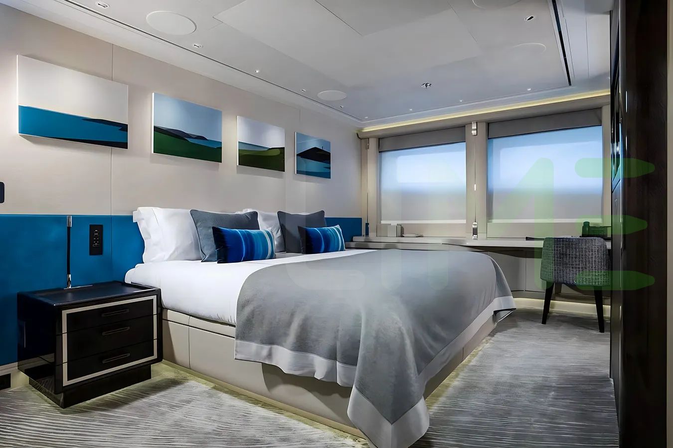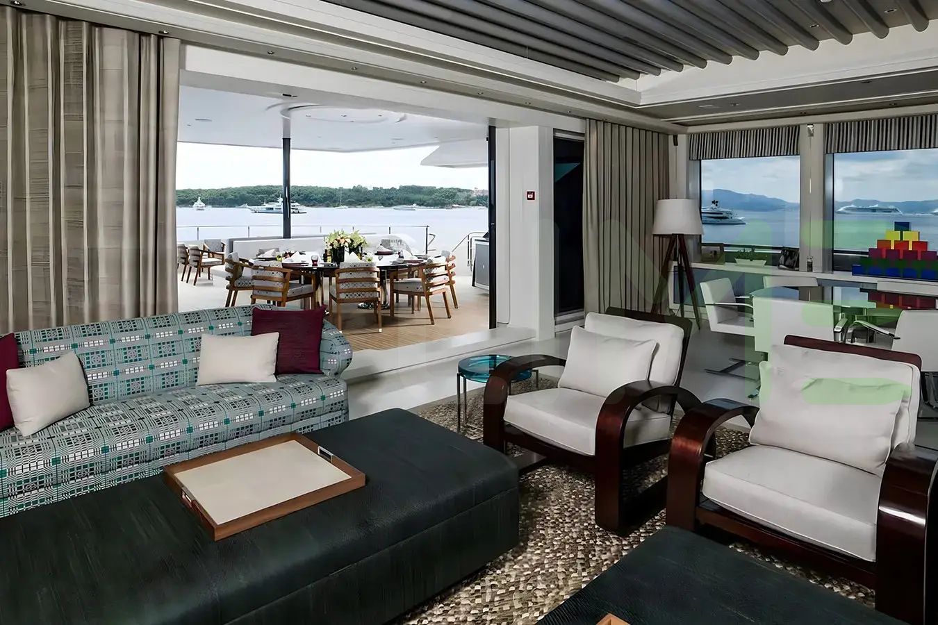 With a gross tonnage of 2,065, the M’BRACE yacht for charter provides ample interior space for enjoyment. M’BRACE offers accommodations for up to 12 guests in 8 lavishly appointed staterooms. She can also carry up to 18 crew onboard, including the Captain, to ensure a relaxed luxury yacht charter experience. The interior design by Harrison Eidsgaard exudes a sense of luxury, seamlessly blending comfort with style.