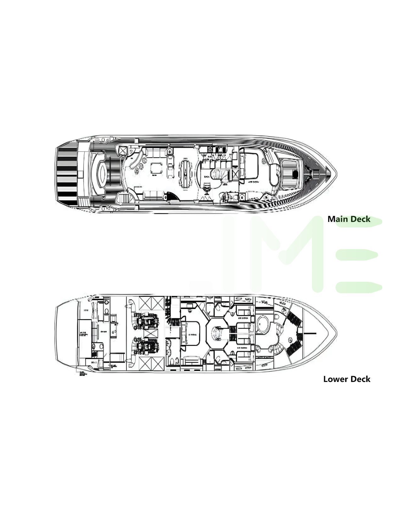 Request plans that include the layout of staterooms, guest areas, and outdoor spaces, as well as crew quarters and work areas.