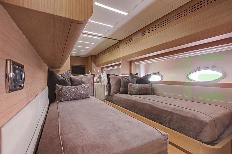With a gross tonnage of 77, the MILAGRO'S yacht for charter provides ample interior space for enjoyment. MILAGRO'S offers accommodations for up to 6 guests in 3 lavishly appointed staterooms. She can also carry up to 3 crew onboard, including the Captain, to ensure a relaxed luxury yacht charter experience. The interior design by Fulvio De Simoni Yacht Design exudes a sense of luxury, seamlessly blending comfort with style.