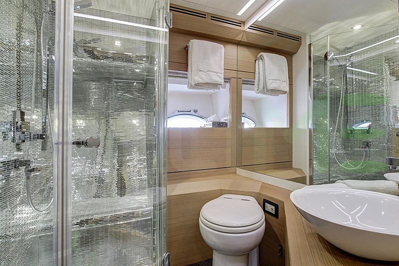 The exterior, designed by Fulvio De Simoni Yacht Design, captures your attention with beautiful lines and impeccable craftsmanship. Whether you're lounging on the spacious decks or enjoying water sports in a secluded anchorage, the MILAGRO'S yacht for charter, built of GRP, offers a wealth of opportunities for relaxation and adventure.