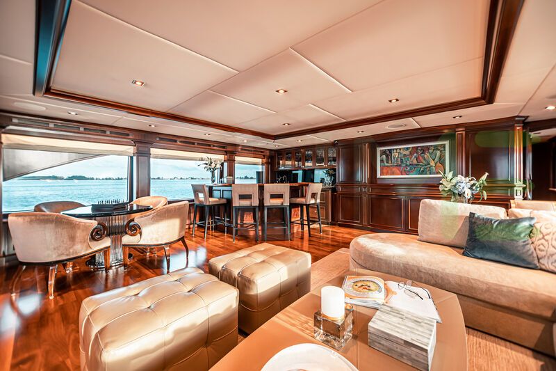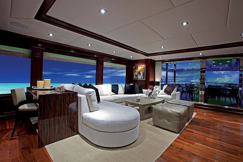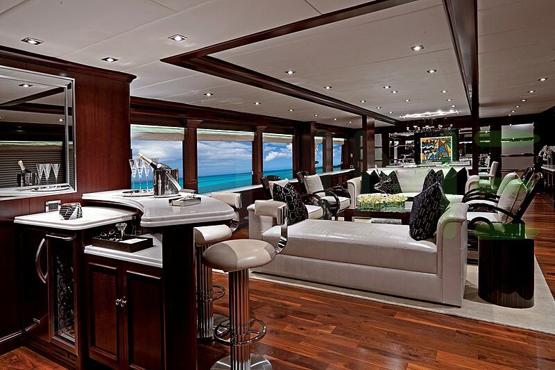 With a gross tonnage of 418, the MIRABELLA yacht for charter provides ample interior space for enjoyment. MIRABELLA offers accommodations for up to 12 guests in 5 lavishly appointed staterooms. She can also carry up to 9 crew onboard, including the Captain, to ensure a relaxed luxury yacht charter experience. The interior design by Scott Carpenter exudes a sense of luxury, seamlessly blending comfort with style.