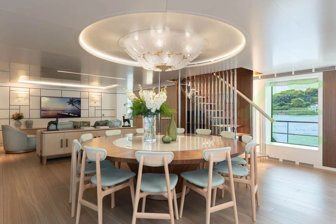With a gross tonnage of 499, the MISS CANDY yacht for charter provides ample interior space for enjoyment. MISS CANDY offers accommodations for up to 10 guests in 5 lavishly appointed staterooms. She can also carry up to 11 crew onboard, including the Captain, to ensure a relaxed luxury yacht charter experience. The interior design by Optima Design exudes a sense of luxury, seamlessly blending comfort with style.