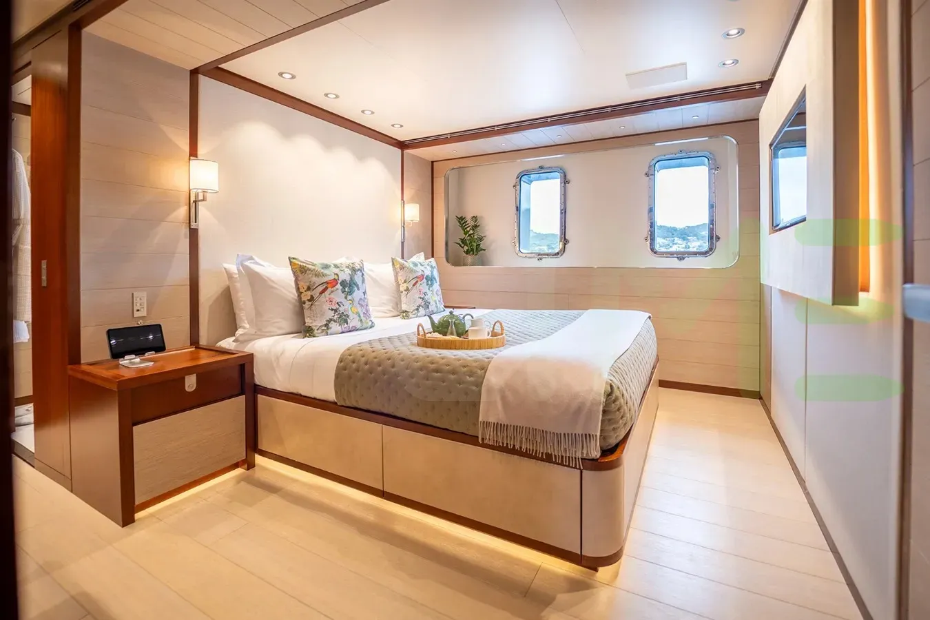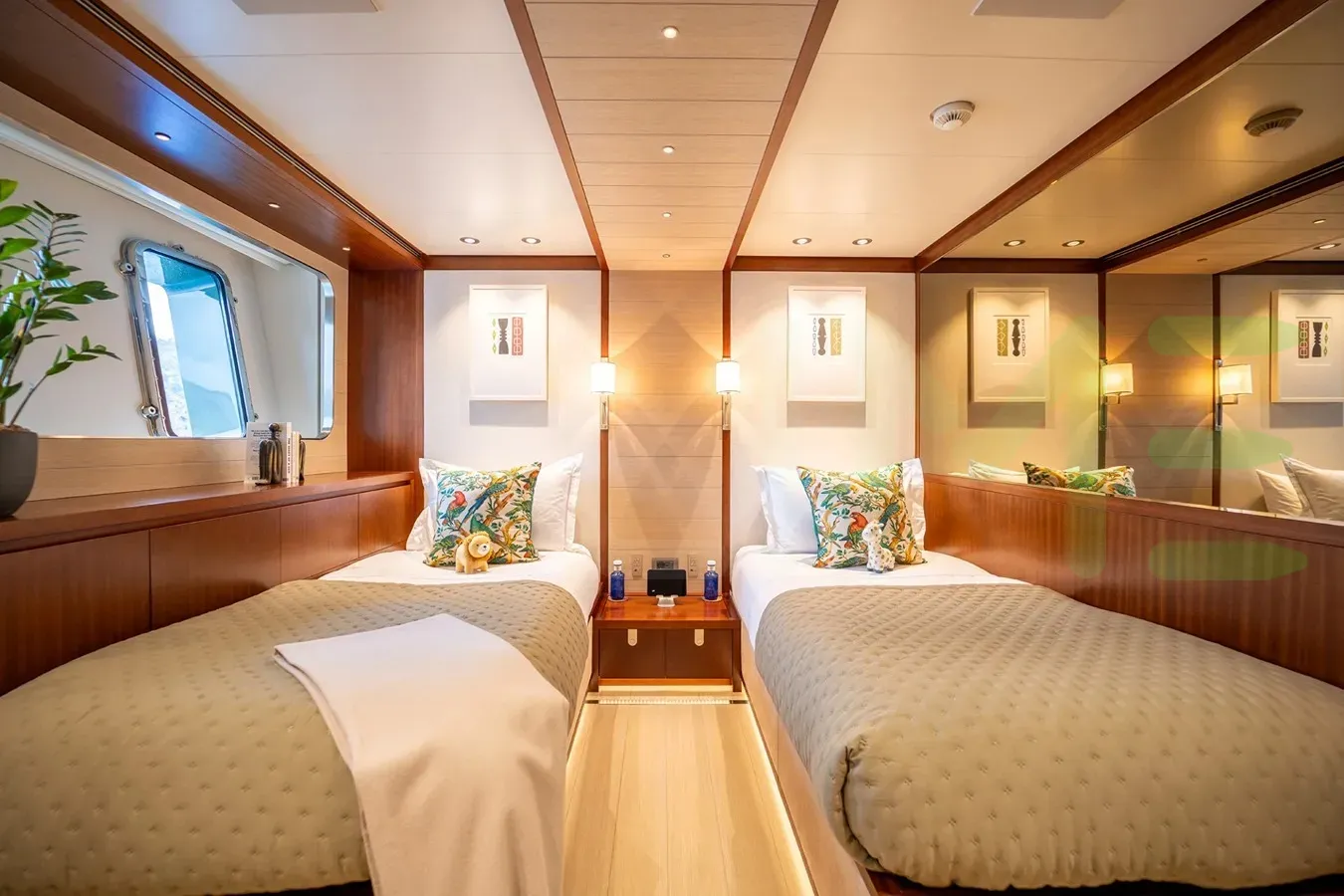With a gross tonnage of 469, the MOKA yacht for charter provides ample interior space for enjoyment. MOKA offers accommodations for up to 10 guests in 5 lavishly appointed staterooms. She can also carry up to 9 crew onboard, including the Captain, to ensure a relaxed luxury yacht charter experience. The interior design by Francesco Paszkowski exudes a sense of luxury, seamlessly blending comfort with style.