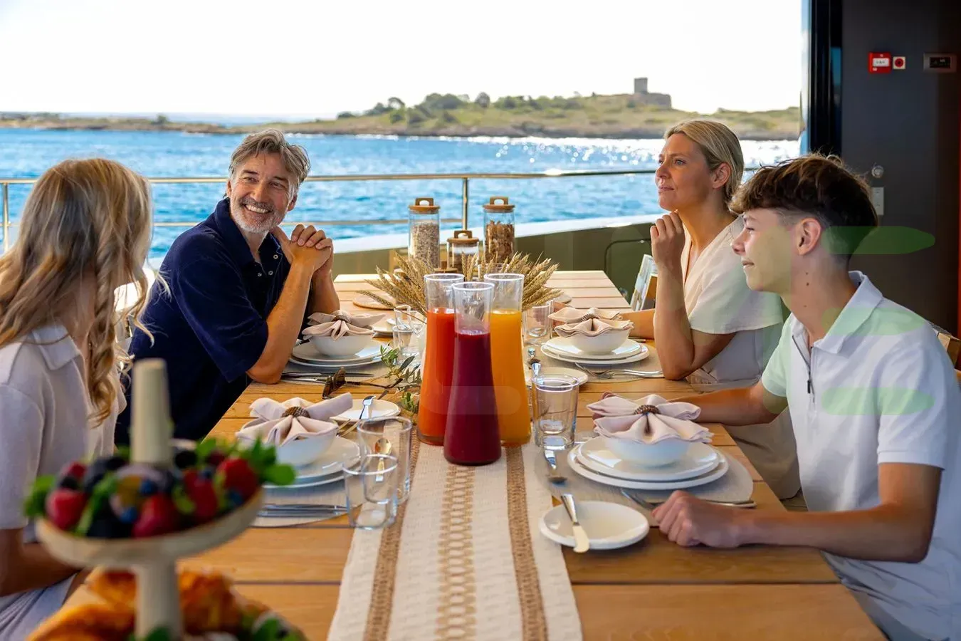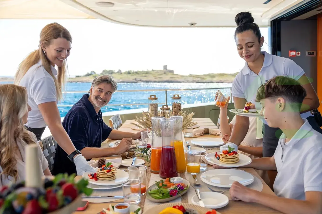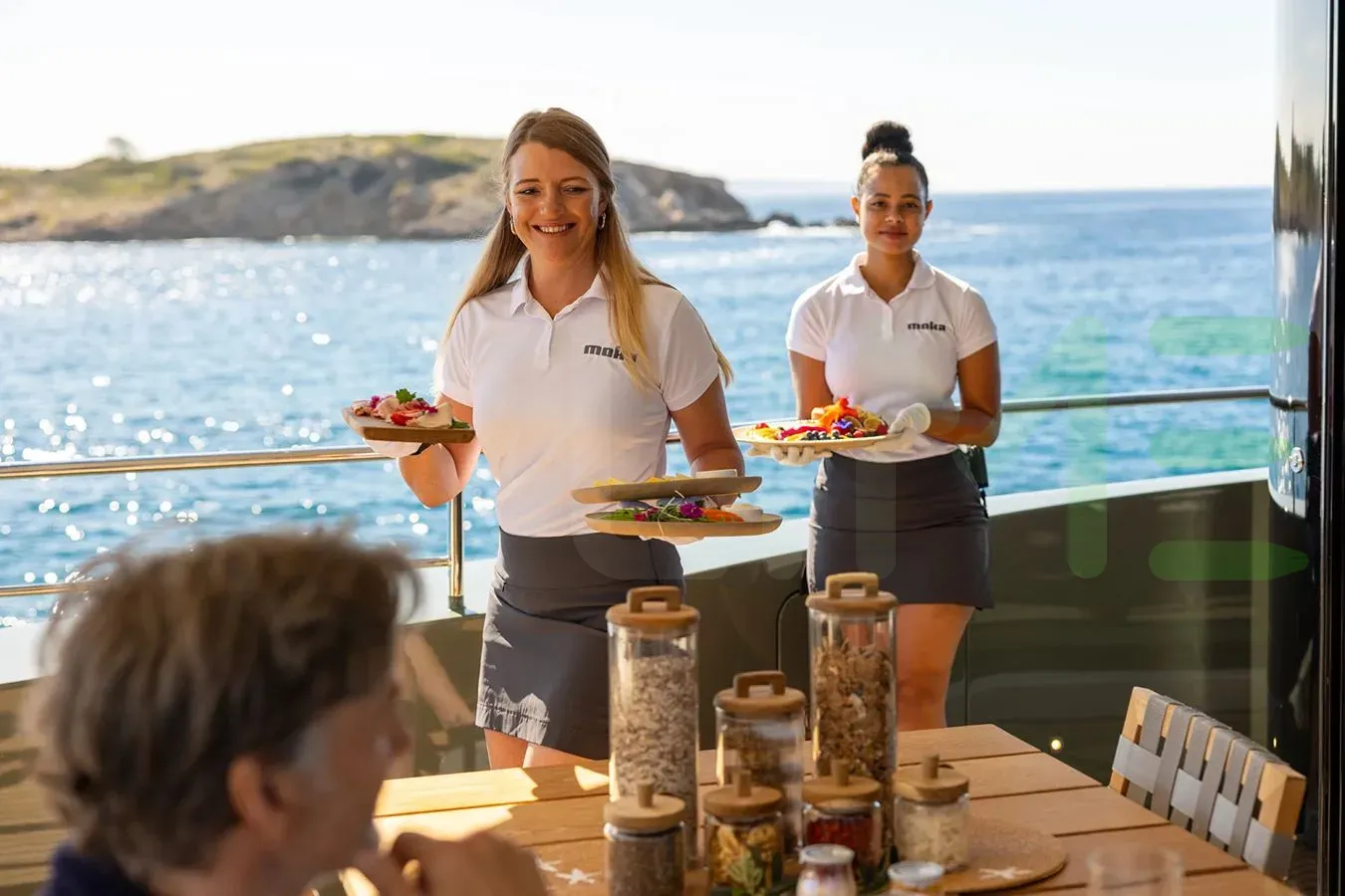 Indulge in the opulent comforts of spacious lounges, gourmet dining areas, and elegantly appointed staterooms. Savor the breathtaking views from the open decks, unwind on a sun lounge, or stay active in the water. For adventure enthusiasts, the MOKA motoryacht is equipped with an array of water toys. Dive into the crystal-clear waters for a refreshing swim, explore hidden coves, or experience the thrill of wakeboarding. With attentive crew members catering to your every need, a yacht charter promises an unforgettable blend of relaxation, luxury, and adventure.