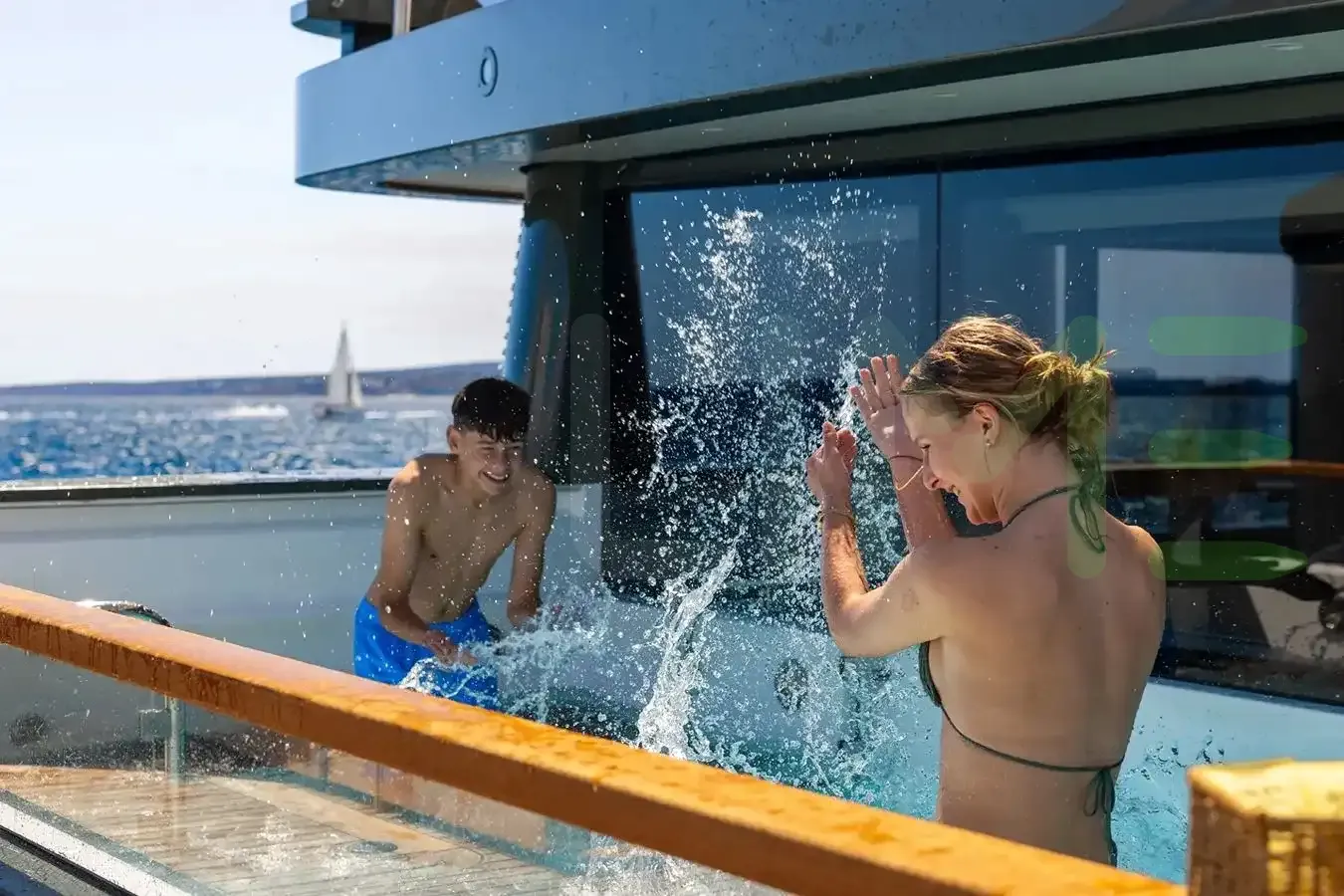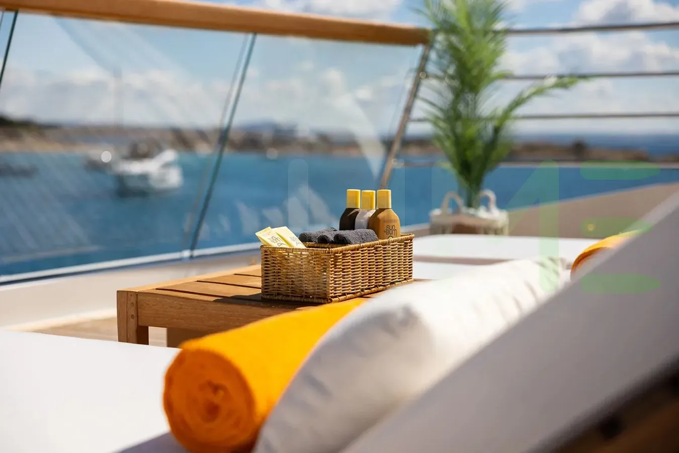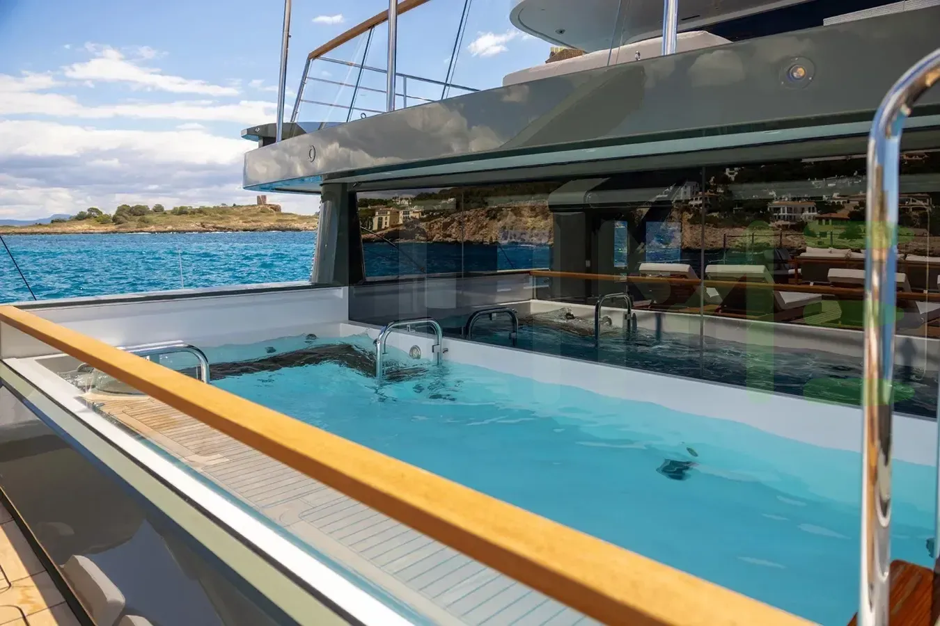 Keeping comfortable and entertained on Moka is easy thanks to the available amenities such as the pool, useful to practice your technique or just cool off. Even the most discerning of charter guests will enjoy the included beach club or elsewhere, maintain your fitness routine and work out in the well-equipped gym. Sit back with a glass of champagne in the deck jacuzzi.