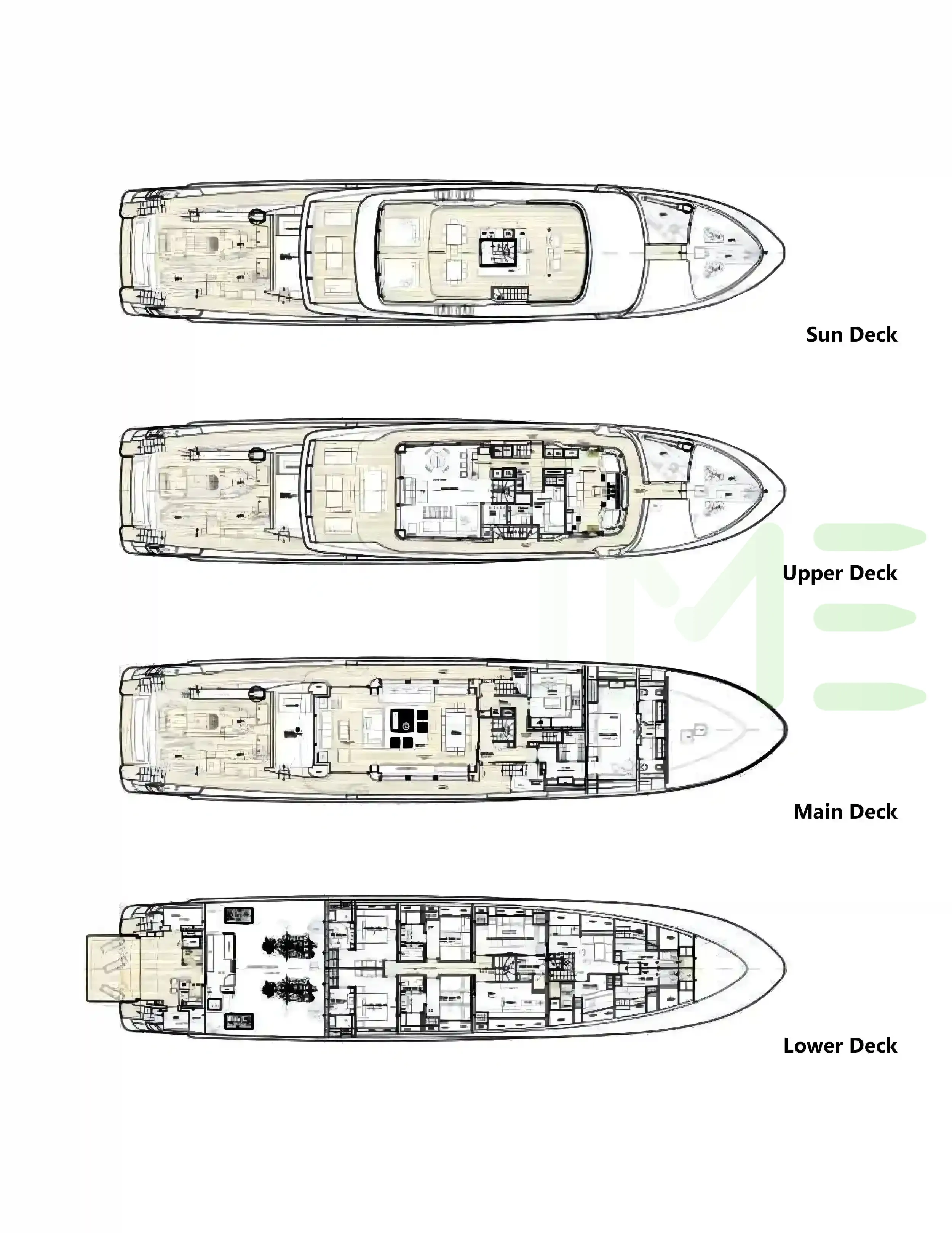 Request plans that include the layout of staterooms, guest areas, and outdoor spaces, as well as crew quarters and work areas.