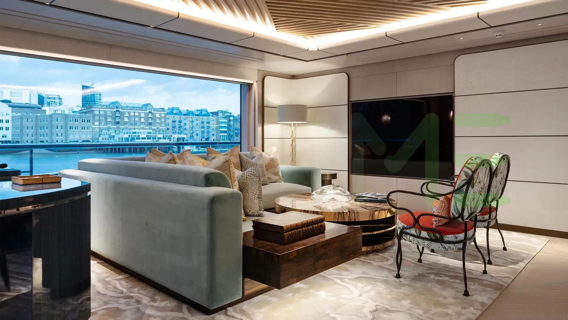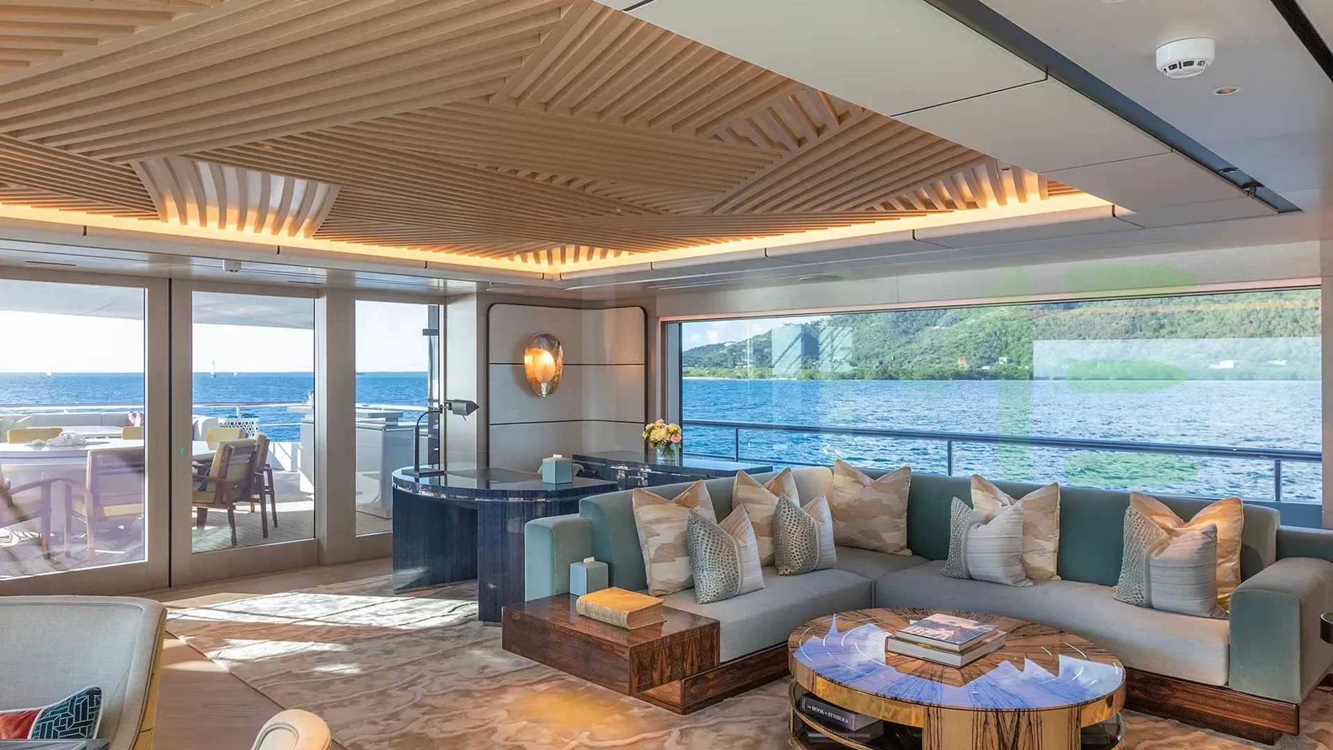 With a gross tonnage of 836, the MOON SAND yacht for charter provides ample interior space for enjoyment. MOON SAND offers accommodations for up to 10 guests in 5 lavishly appointed staterooms. She can also carry up to 15 crew onboard, including the Captain, to ensure a relaxed luxury yacht charter experience. The interior design by Bannenberg & Rowell Design exudes a sense of luxury, seamlessly blending comfort with style.