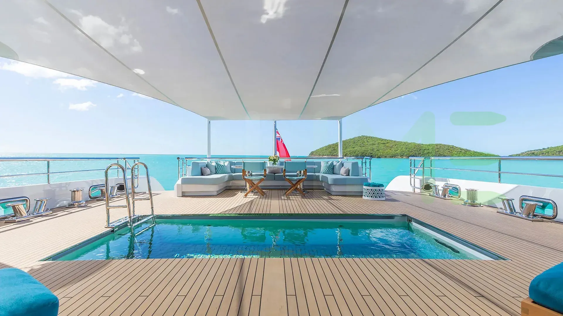 - Spacious sundeck with shaded sit-up bar and generously-sized daybeds