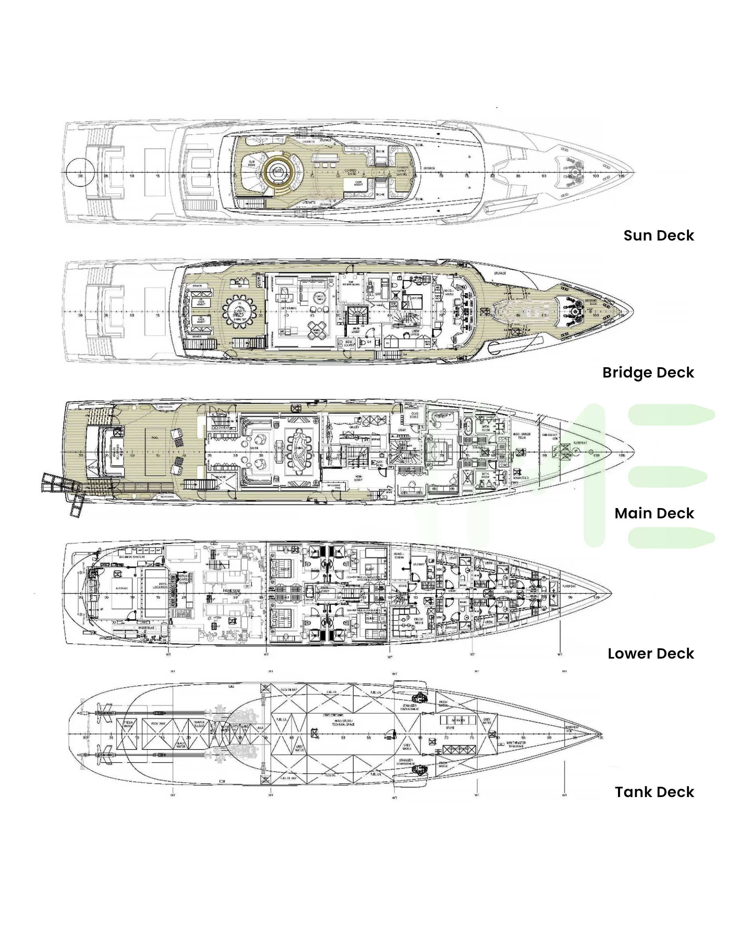 Request plans that include the layout of staterooms, guest areas, and outdoor spaces, as well as crew quarters and work areas.