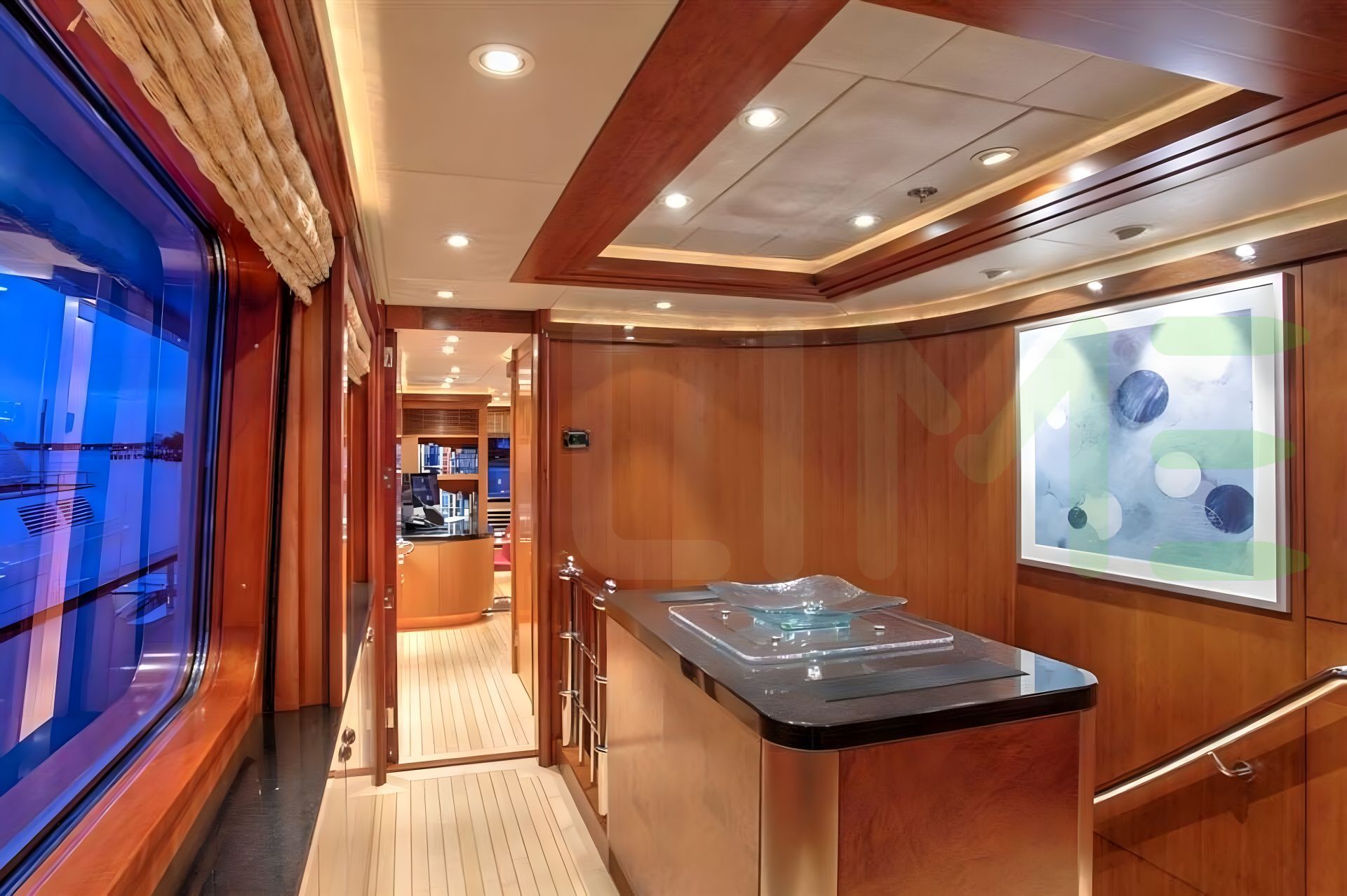 With a gross tonnage of 443, the MOONSHADOW yacht for charter provides ample interior space for enjoyment. MOONSHADOW offers accommodations for up to 8 guests in 4 lavishly appointed staterooms. She can also carry up to 9 crew onboard, including the Captain, to ensure a relaxed luxury yacht charter experience. The interior design by Glade Johnson Design, Inc. exudes a sense of luxury, seamlessly blending comfort with style.
