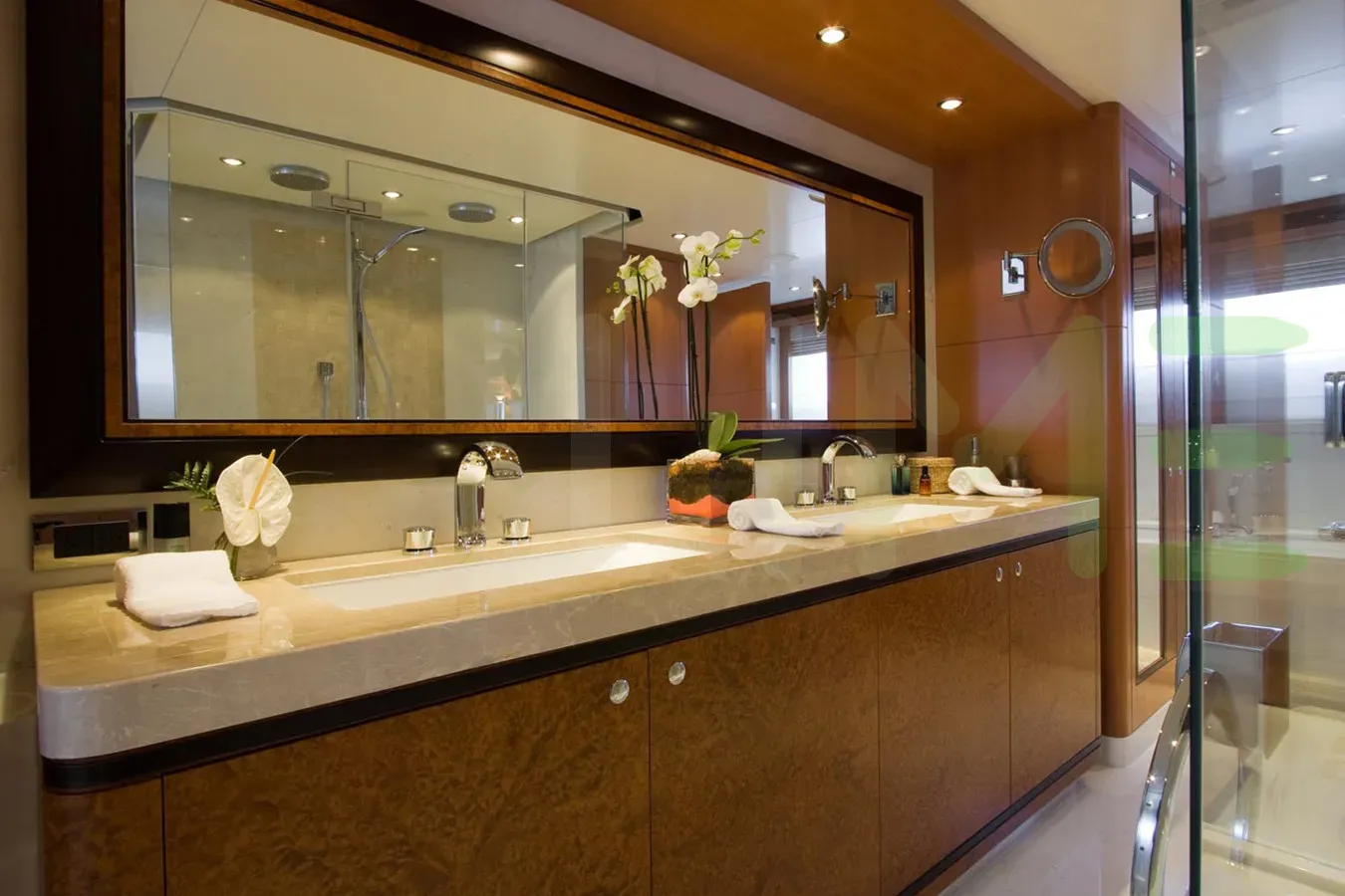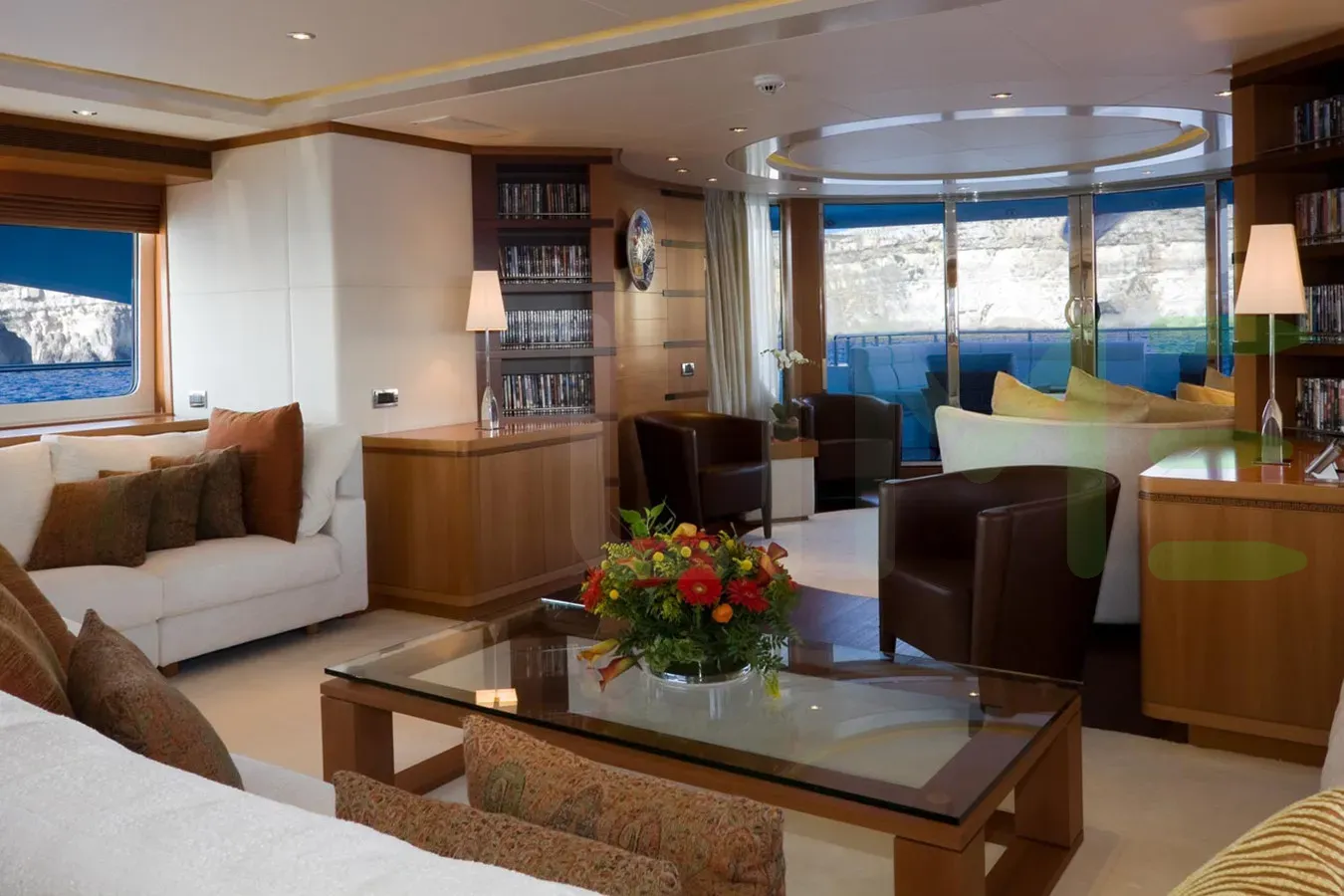 With a gross tonnage of 458, the MORDAN yacht for charter provides ample interior space for enjoyment. MORDAN offers accommodations for up to 12 guests in 5 lavishly appointed staterooms. She can also carry up to 9 crew onboard, including the Captain, to ensure a relaxed luxury yacht charter experience. The interior design by Heesen Yachts, Omega Architects exudes a sense of luxury, seamlessly blending comfort with style.