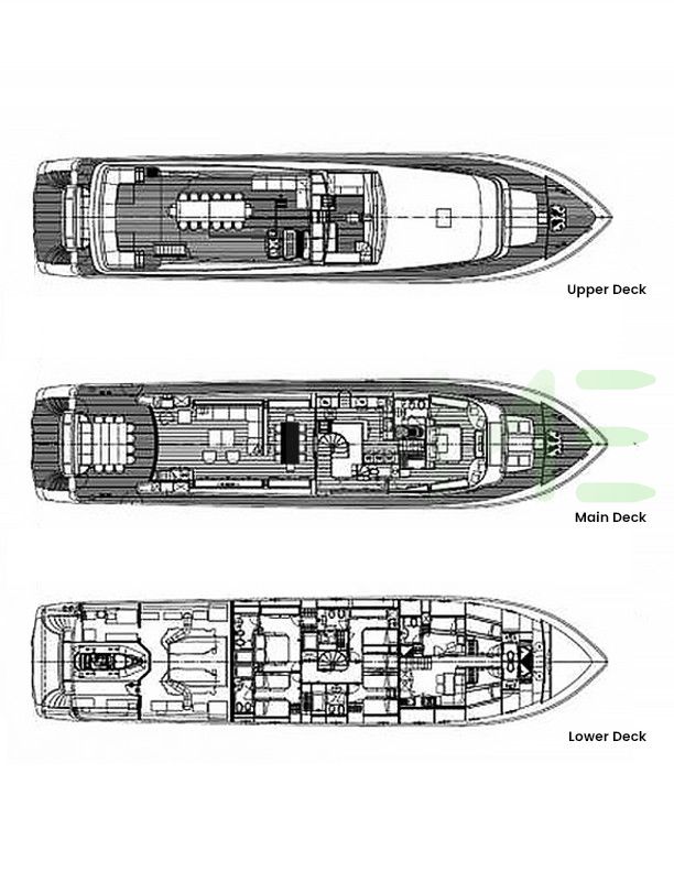 Request plans that include the layout of staterooms, guest areas, and outdoor spaces, as well as crew quarters and work areas.