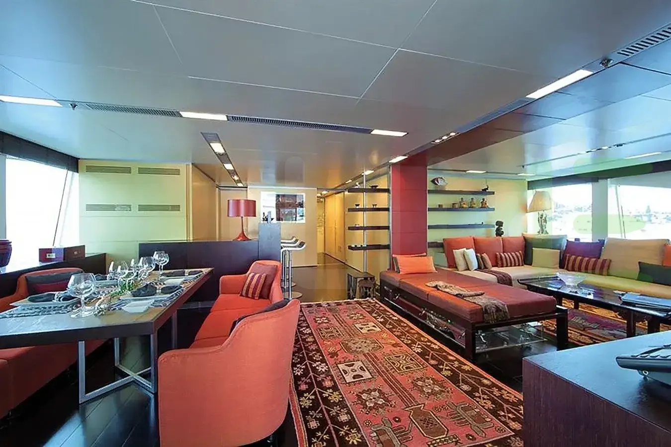 With a gross tonnage of 812, the MY FALCON yacht for charter provides ample interior space for enjoyment. MY FALCON offers accommodations for up to 12 guests in 6 lavishly appointed staterooms. She can also carry up to 12 crew onboard, including the Captain, to ensure a relaxed luxury yacht charter experience. The interior design by Lazzarini & Pickering exudes a sense of luxury, seamlessly blending comfort with style.