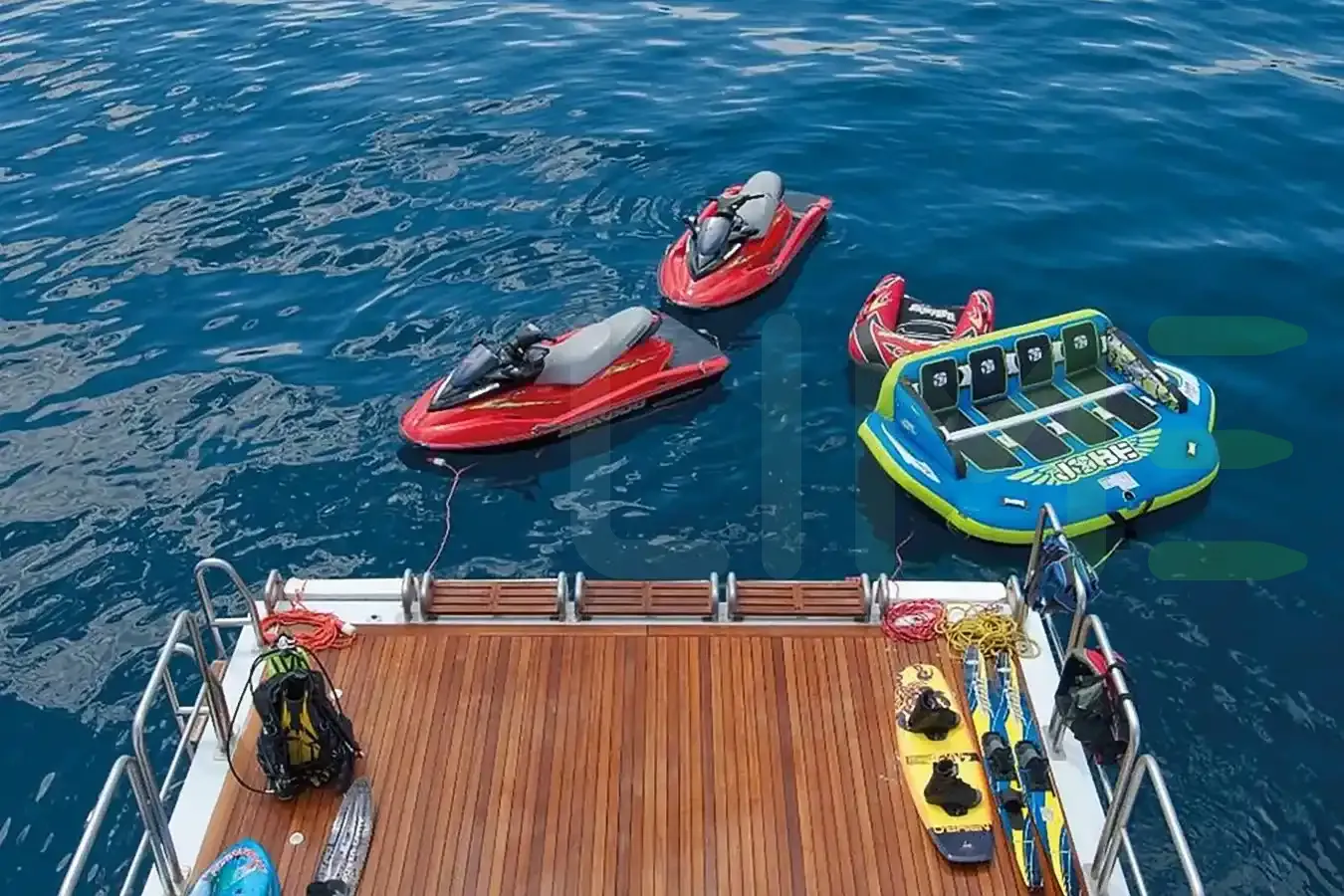 Indulge in the opulent comforts of spacious lounges, gourmet dining areas, and elegantly appointed staterooms. Savor the breathtaking views from the open decks, unwind on a sun lounge, or stay active in the water. For adventure enthusiasts, the MY FALCON motoryacht is equipped with an array of water toys. Dive into the crystal-clear waters for a refreshing swim, explore hidden coves, or experience the thrill of wakeboarding. With attentive crew members catering to your every need, a yacht charter promises an unforgettable blend of relaxation, luxury, and adventure.
