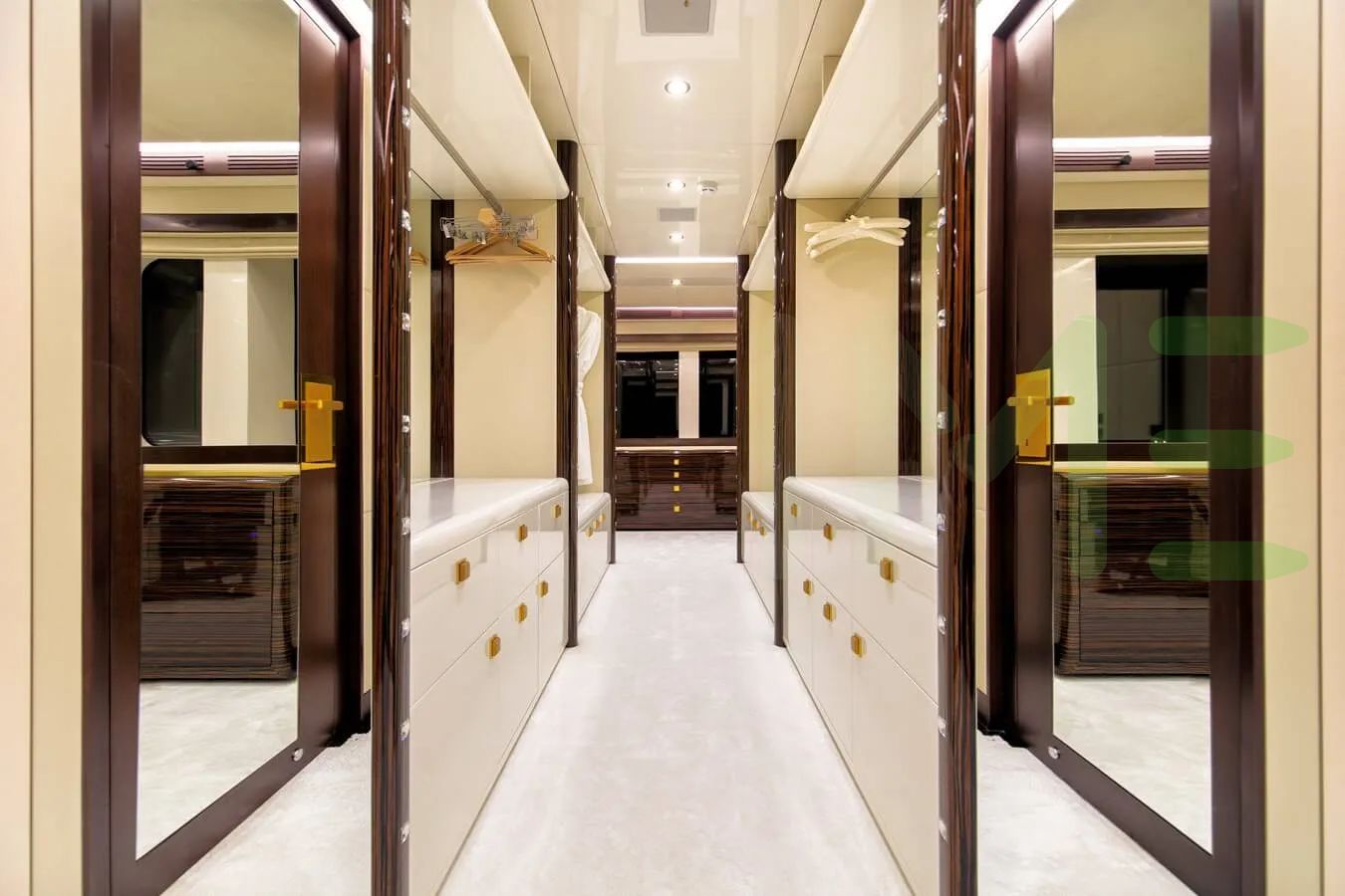 With a gross tonnage of 455, the MYSTIC yacht for charter provides ample interior space for enjoyment. MYSTIC offers accommodations for up to 10 guests in 6 lavishly appointed staterooms. She can also carry up to 9 crew onboard, including the Captain, to ensure a relaxed luxury yacht charter experience. The interior design by Schnaase Interior Design exudes a sense of luxury, seamlessly blending comfort with style.