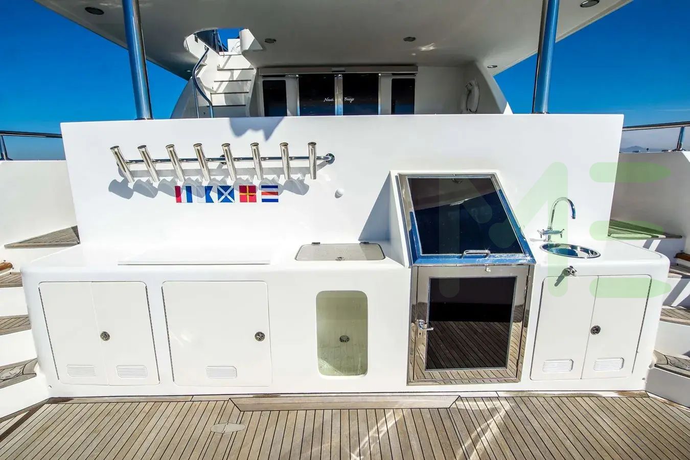 The exterior, designed by Ed Monk Yacht Design, captures your attention with beautiful lines and impeccable craftsmanship. Whether you're lounging on the spacious decks or enjoying water sports in a secluded anchorage, the NAUTI BUOYS yacht for charter, built of GRP, offers a wealth of opportunities for relaxation and adventure.