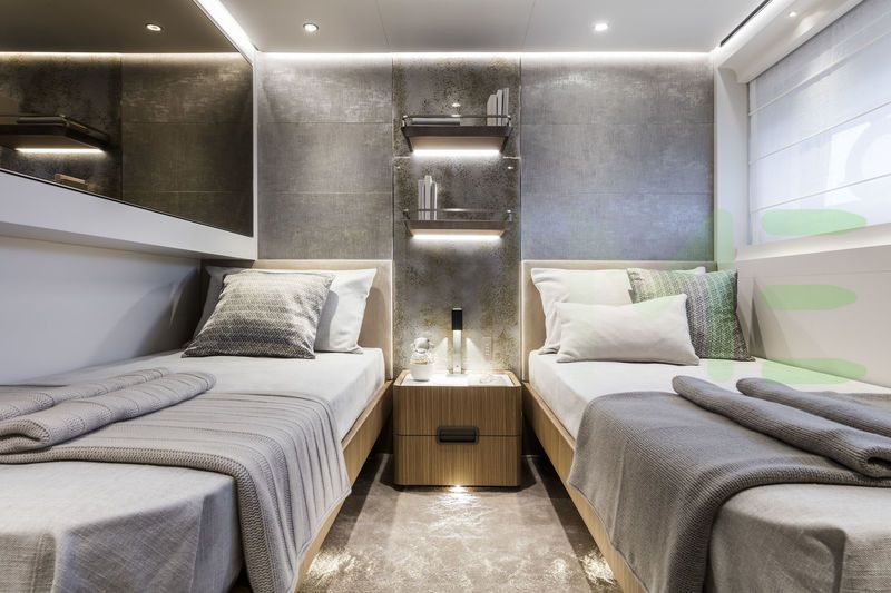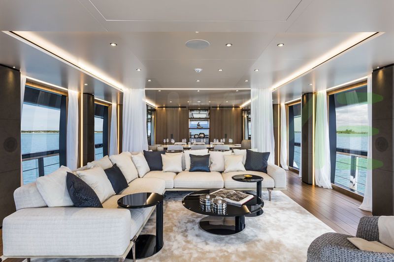 With a gross tonnage of 270, the NEVER BLUE yacht for charter provides ample interior space for enjoyment. NEVER BLUE offers accommodations for up to 10 guests in 5 lavishly appointed staterooms. She can also carry up to 6 crew onboard, including the Captain, to ensure a relaxed luxury yacht charter experience. The interior design by Francesco Paszkowski exudes a sense of luxury, seamlessly blending comfort with style.