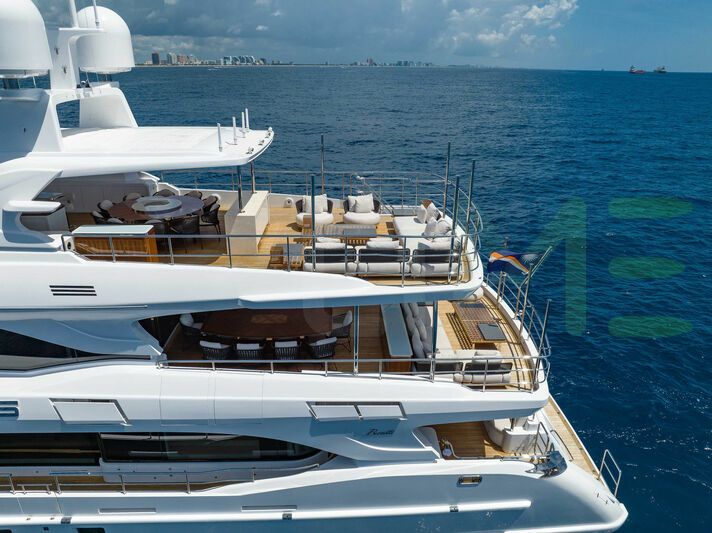 Built by Benetti in Italy, this stunning yacht boasts a length of 115' 10" (35.3m), a beam of 25' 3" (7.7m), and a draft of 7' 1" (2.15m).