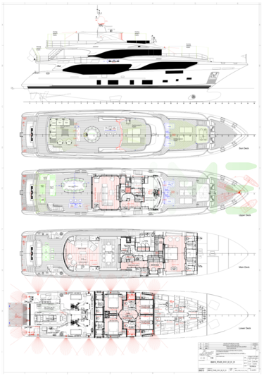 Request plans that include the layout of staterooms, guest areas, and outdoor spaces, as well as crew quarters and work areas.