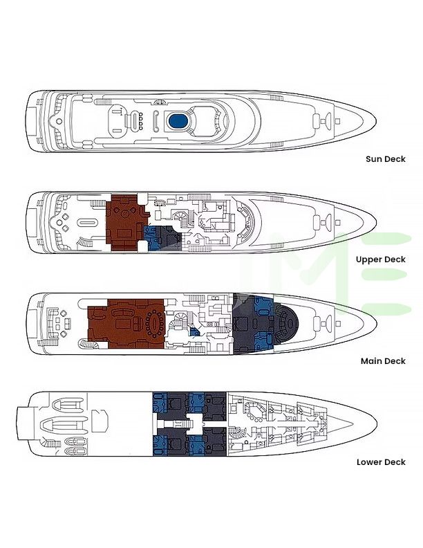 Request plans that include the layout of staterooms, guest areas, and outdoor spaces, as well as crew quarters and work areas.