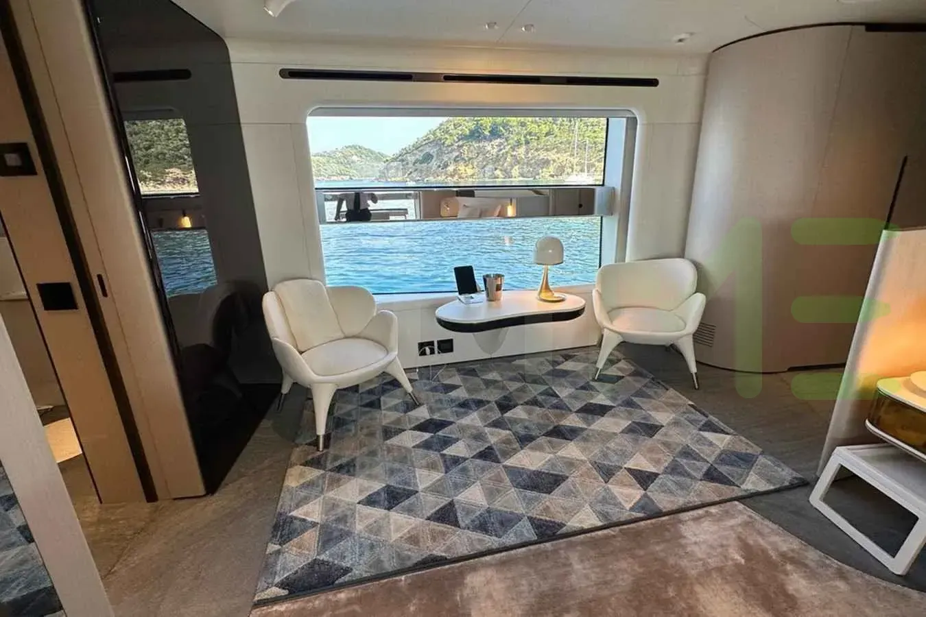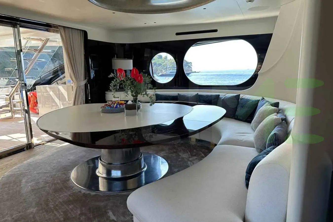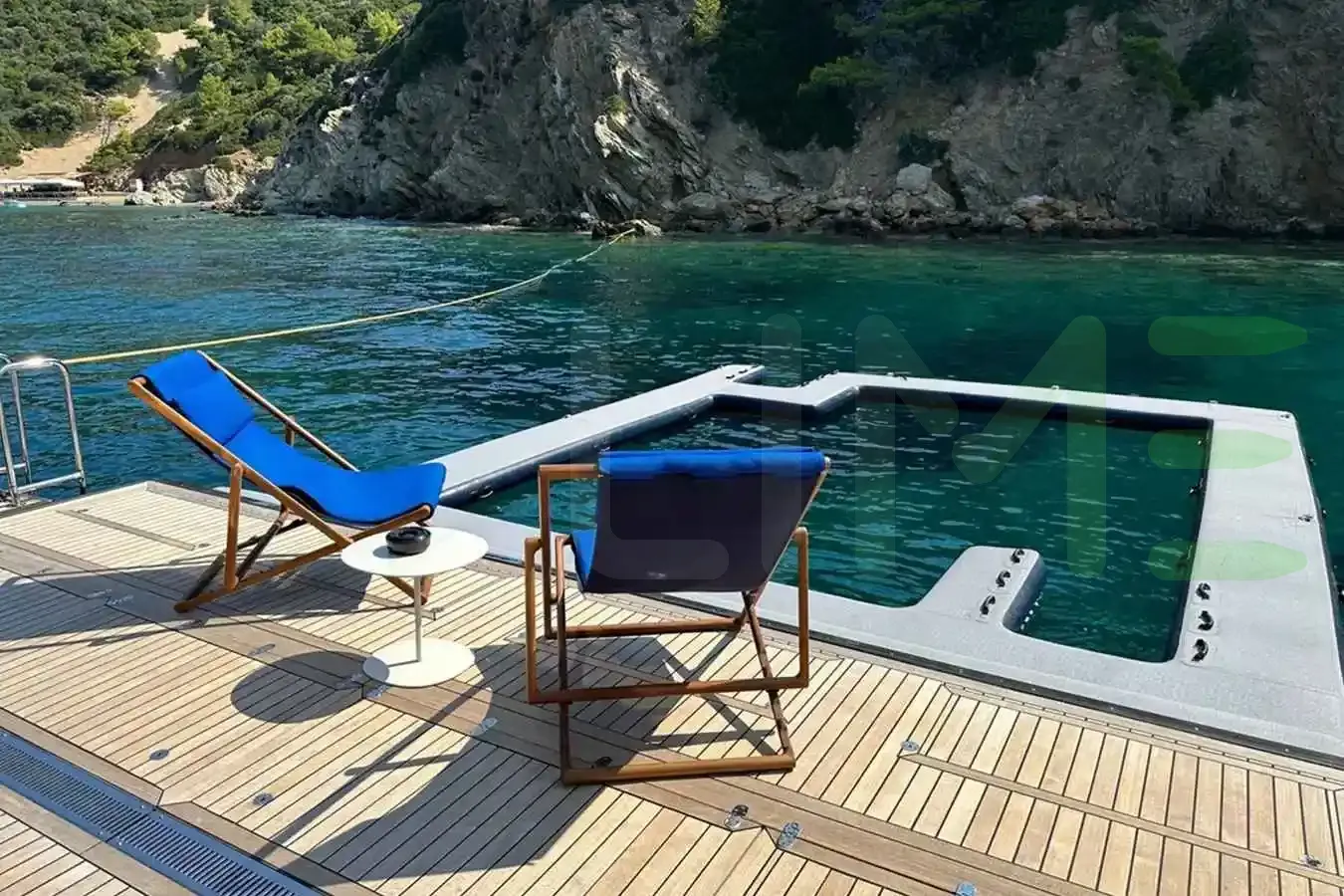 With a gross tonnage of 295, the NG yacht for charter provides ample interior space for enjoyment. NG offers accommodations for up to 10 guests in 5 lavishly appointed staterooms. She can also carry up to 6 crew onboard, including the Captain, to ensure a relaxed luxury yacht charter experience. The interior design by Salvagni Architetti exudes a sense of luxury, seamlessly blending comfort with style.
