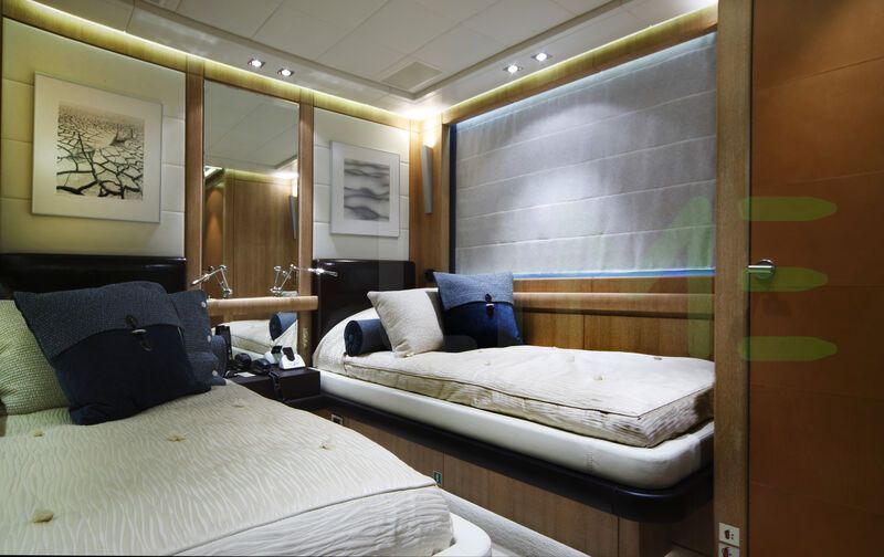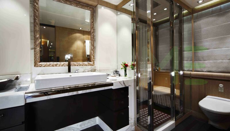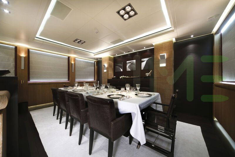 With a gross tonnage of 310, the NINO yacht for charter provides ample interior space for enjoyment. NINO offers accommodations for up to 11 guests in 5 lavishly appointed staterooms. She can also carry up to 7 crew onboard, including the Captain, to ensure a relaxed luxury yacht charter experience. The interior design by Cristiano Gatto Design exudes a sense of luxury, seamlessly blending comfort with style.