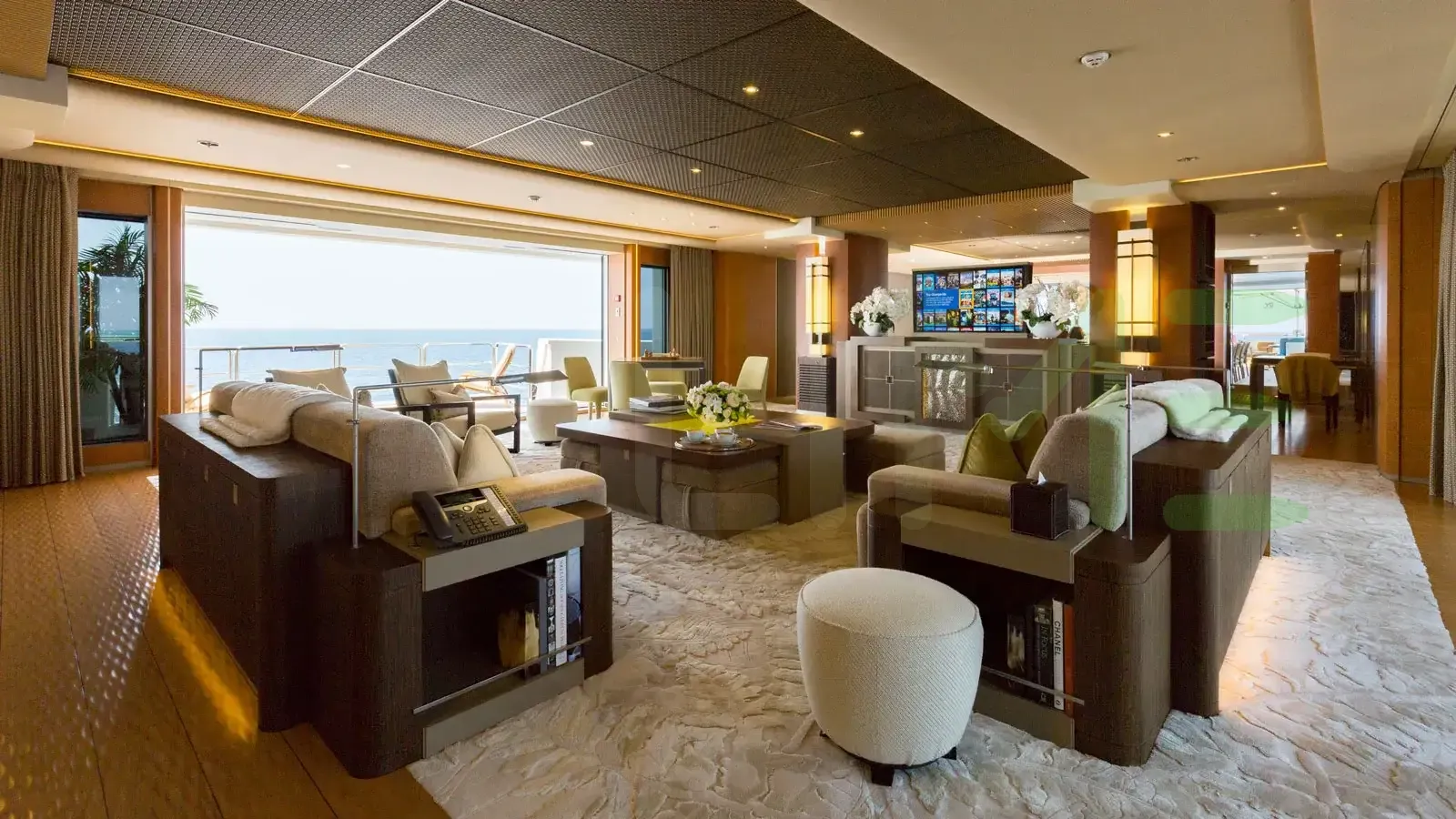 - Premium wellness facilities, including massage, sauna, steam room, gym and on-deck Jacuzzi