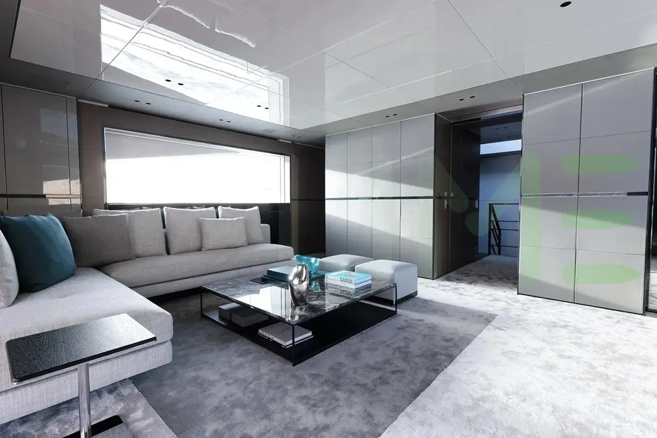 With a gross tonnage of 498, the NO STRESS yacht for charter provides ample interior space for enjoyment. NO STRESS offers accommodations for up to 10 guests in 5 lavishly appointed staterooms. She can also carry up to 9 crew onboard, including the Captain, to ensure a relaxed luxury yacht charter experience. The interior design by Team for Design - Enrico Gobbi exudes a sense of luxury, seamlessly blending comfort with style.