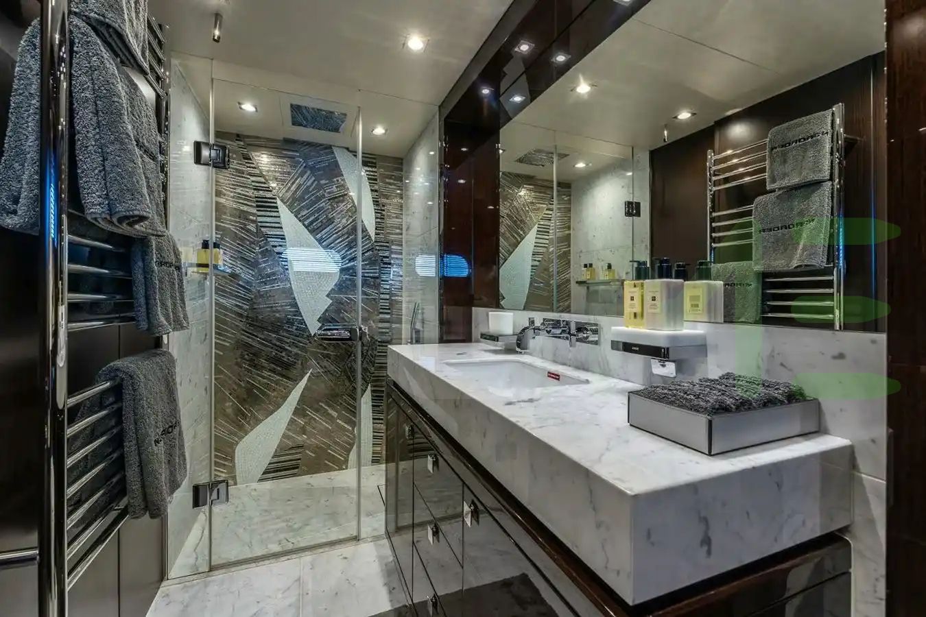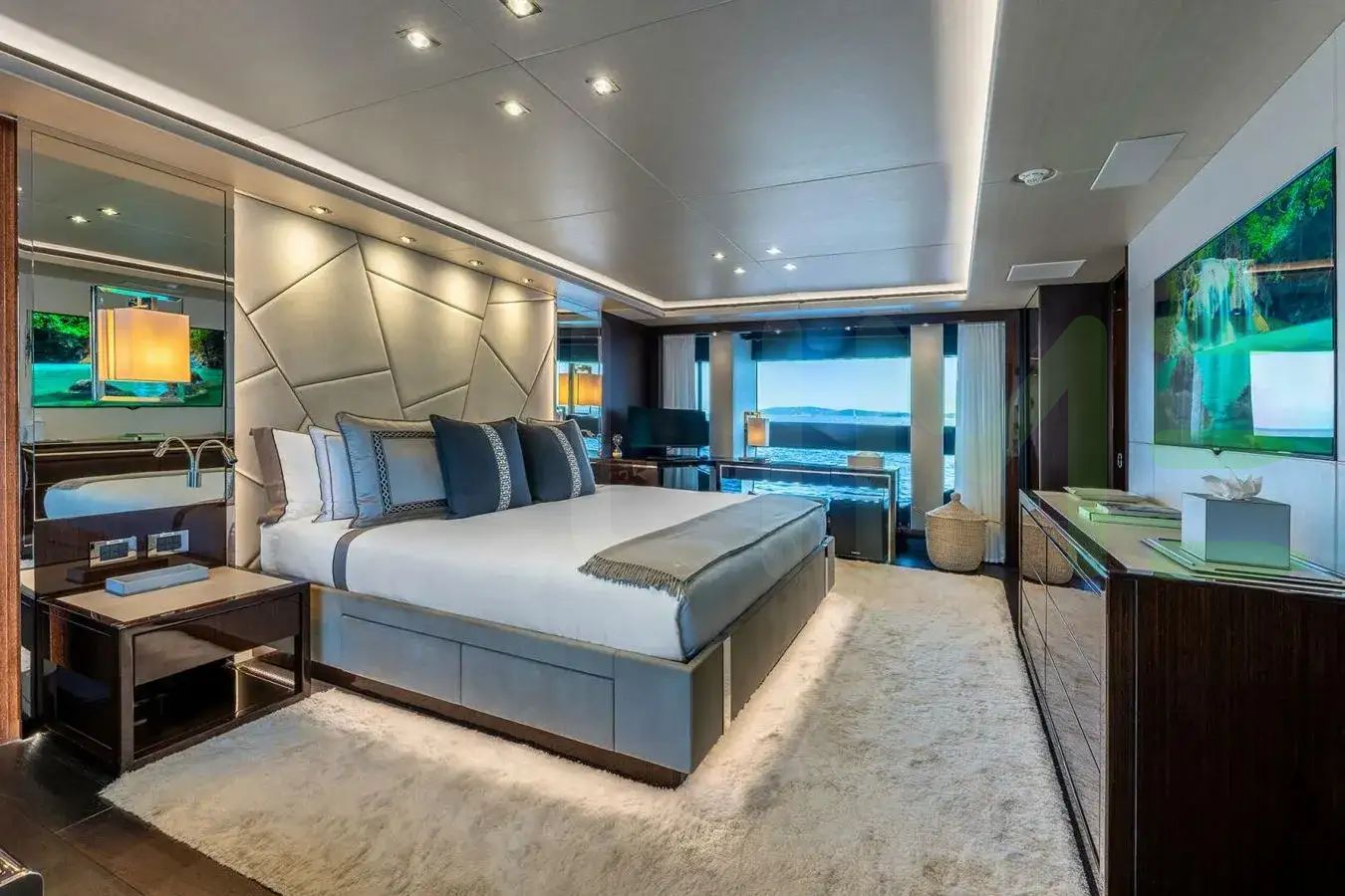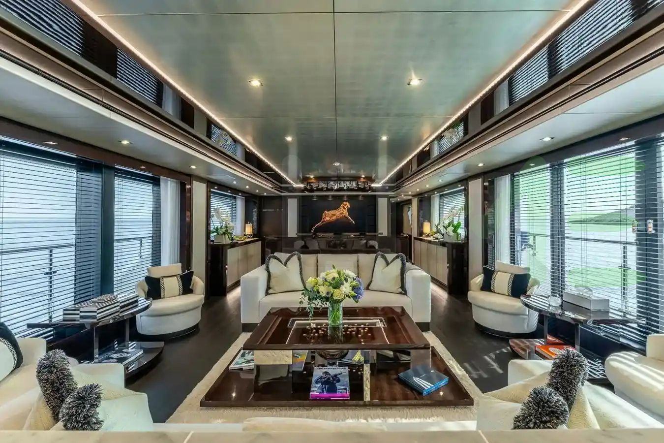 With a gross tonnage of 245, the NOROADER yacht for charter provides ample interior space for enjoyment. NOROADER offers accommodations for up to 12 guests in 5 lavishly appointed staterooms. She can also carry up to 7 crew onboard, including the Captain, to ensure a relaxed luxury yacht charter experience. The interior design by Vickers Studio exudes a sense of luxury, seamlessly blending comfort with style.
