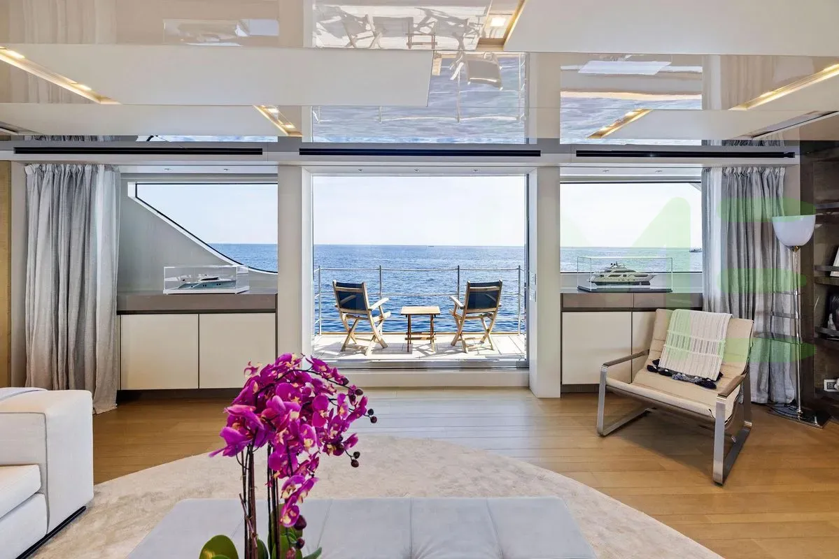 Built by Sanlorenzo in Italy, this stunning yacht boasts a length of 126' (38.4m), a beam of 26' 3" (8m), and a draft of 7' 2" (2.18m).