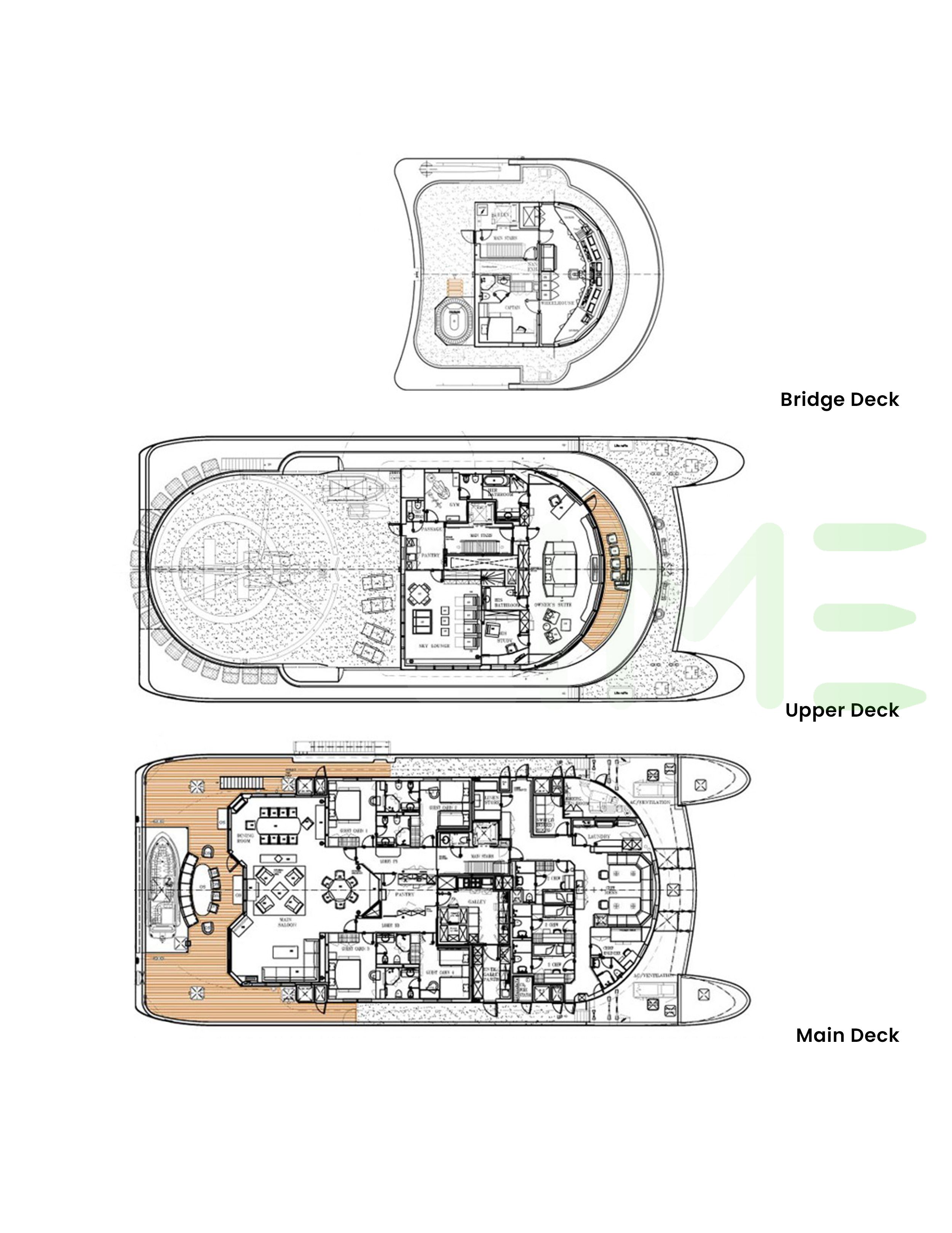 Request plans that include the layout of staterooms, guest areas, and outdoor spaces, as well as crew quarters and work areas.