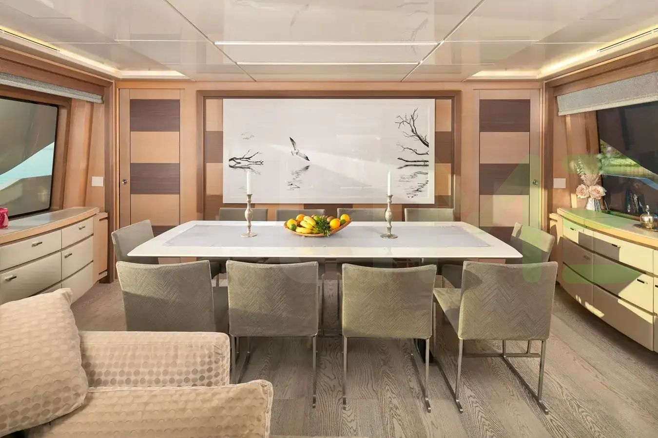 With a gross tonnage of 152, the OCEAN DRIVE yacht for charter provides ample interior space for enjoyment. OCEAN DRIVE offers accommodations for up to 5 guests in 5 lavishly appointed staterooms. She can also carry up to 5 crew onboard, including the Captain, to ensure a relaxed luxury yacht charter experience. The interior design by Galeazzi Design exudes a sense of luxury, seamlessly blending comfort with style.