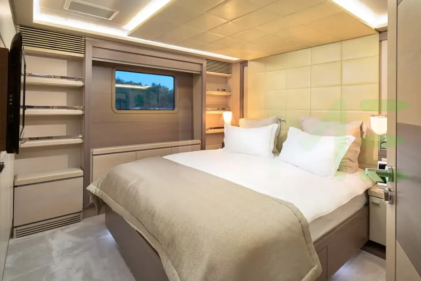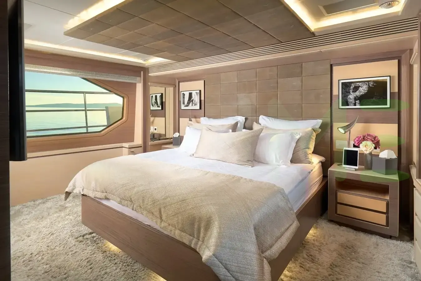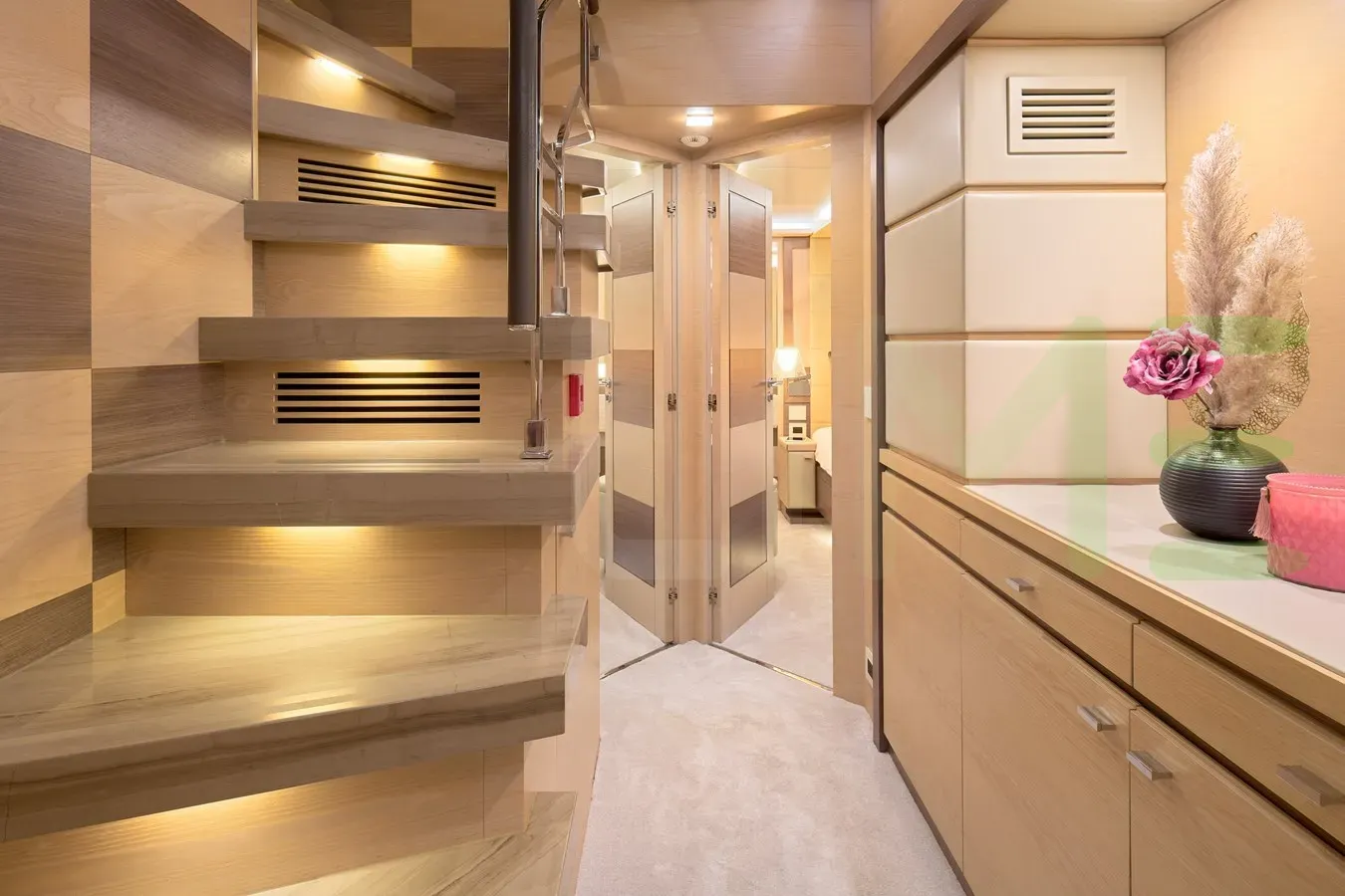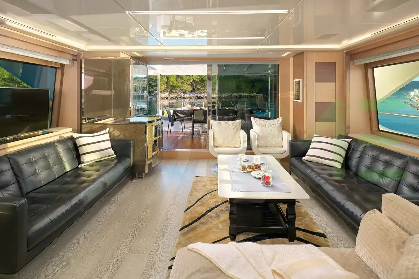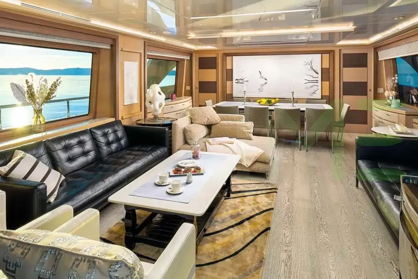 With a gross tonnage of 152, the OCEAN DRIVE yacht for charter provides ample interior space for enjoyment. OCEAN DRIVE offers accommodations for up to 5 guests in 5 lavishly appointed staterooms. She can also carry up to 5 crew onboard, including the Captain, to ensure a relaxed luxury yacht charter experience. The interior design by Galeazzi Design exudes a sense of luxury, seamlessly blending comfort with style.