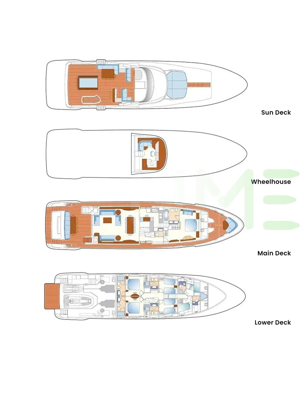 Request plans that include the layout of staterooms, guest areas, and outdoor spaces, as well as crew quarters and work areas.