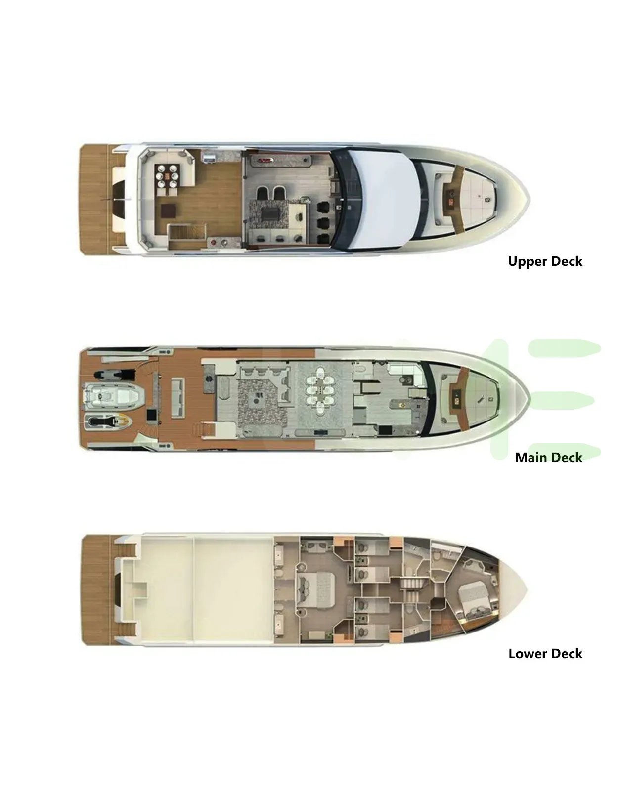 Request plans that include the layout of staterooms, guest areas, and outdoor spaces, as well as crew quarters and work areas.