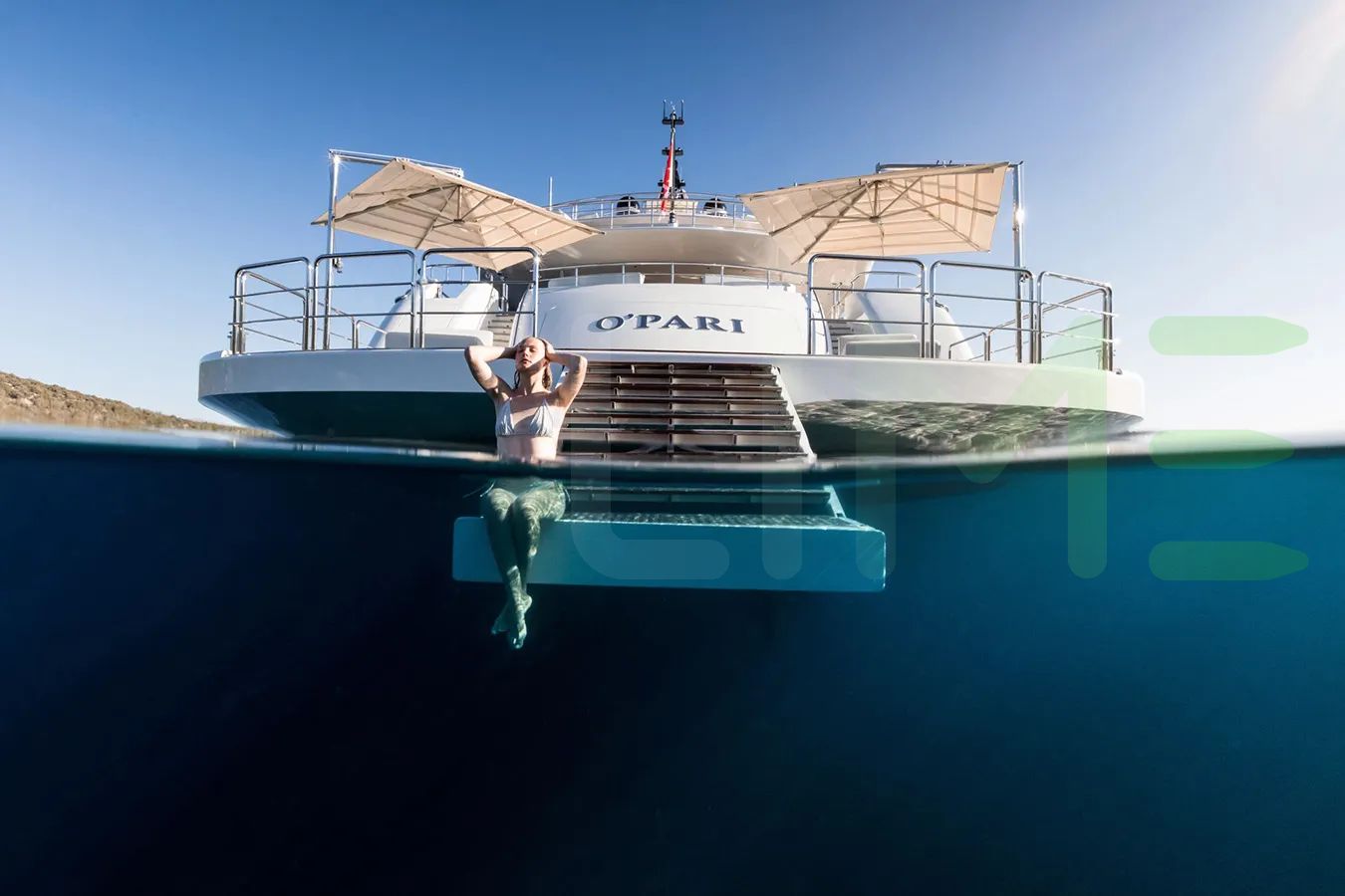Indulge in the opulent comforts of spacious lounges, gourmet dining areas, and elegantly appointed staterooms. Savor the breathtaking views from the open decks, unwind on a sun lounge, or stay active in the water. For adventure enthusiasts, the O'PARI motoryacht is equipped with an array of water toys. Dive into the crystal-clear waters for a refreshing swim, explore hidden coves, or experience the thrill of wakeboarding. With attentive crew members catering to your every need, a yacht charter promises an unforgettable blend of relaxation, luxury, and adventure.