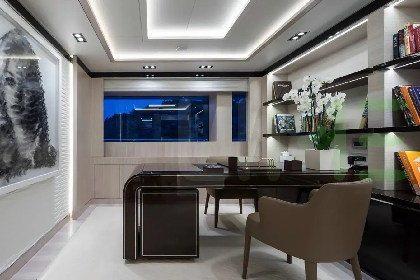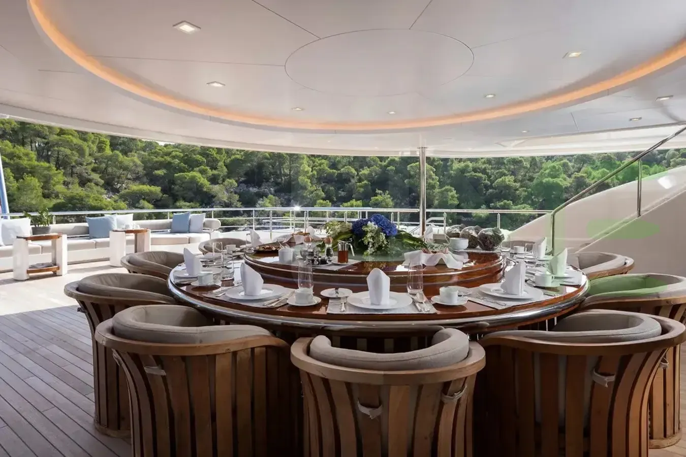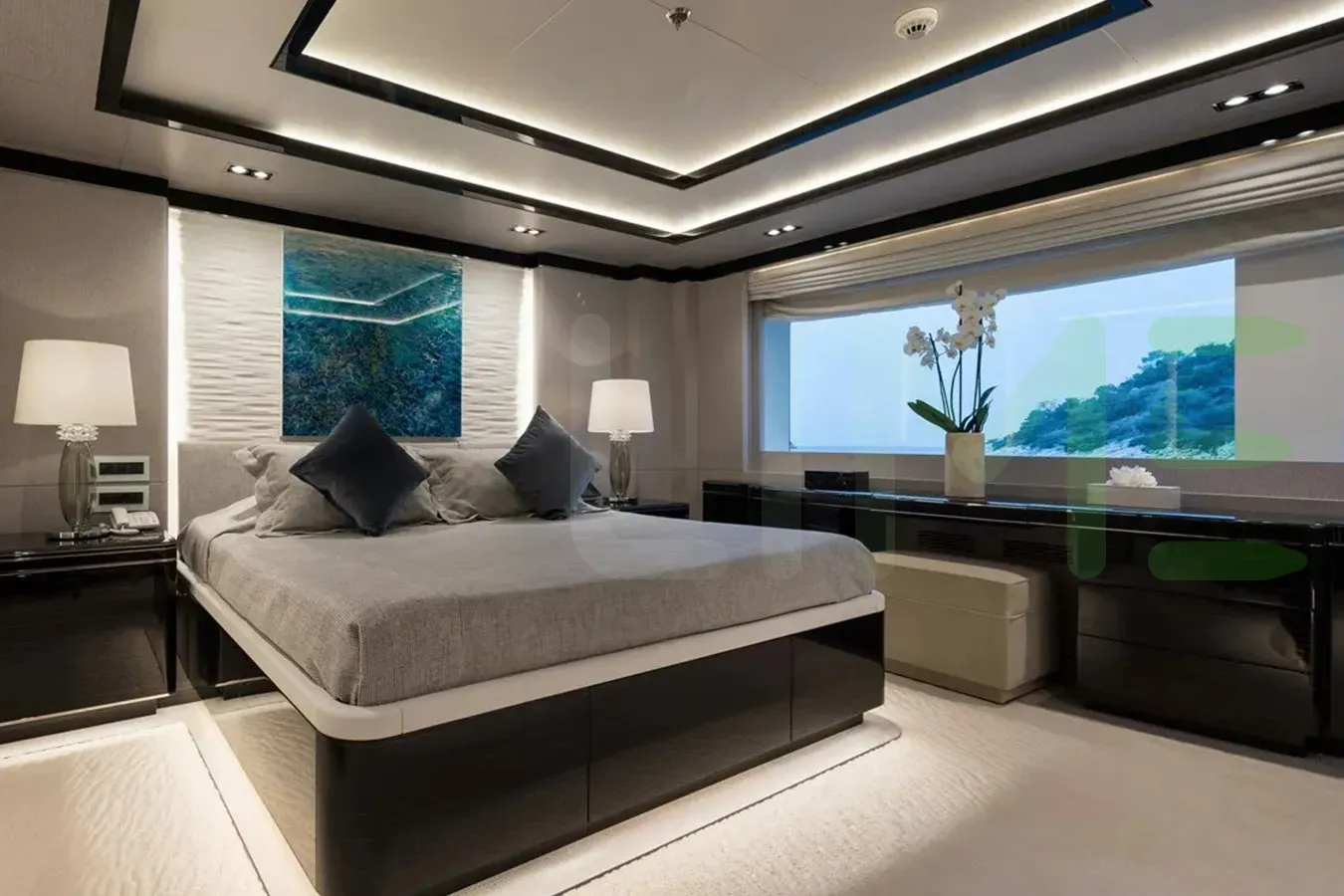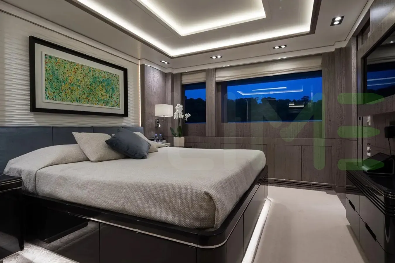 - Vast Owner’s stateroom with 180° panoramic views