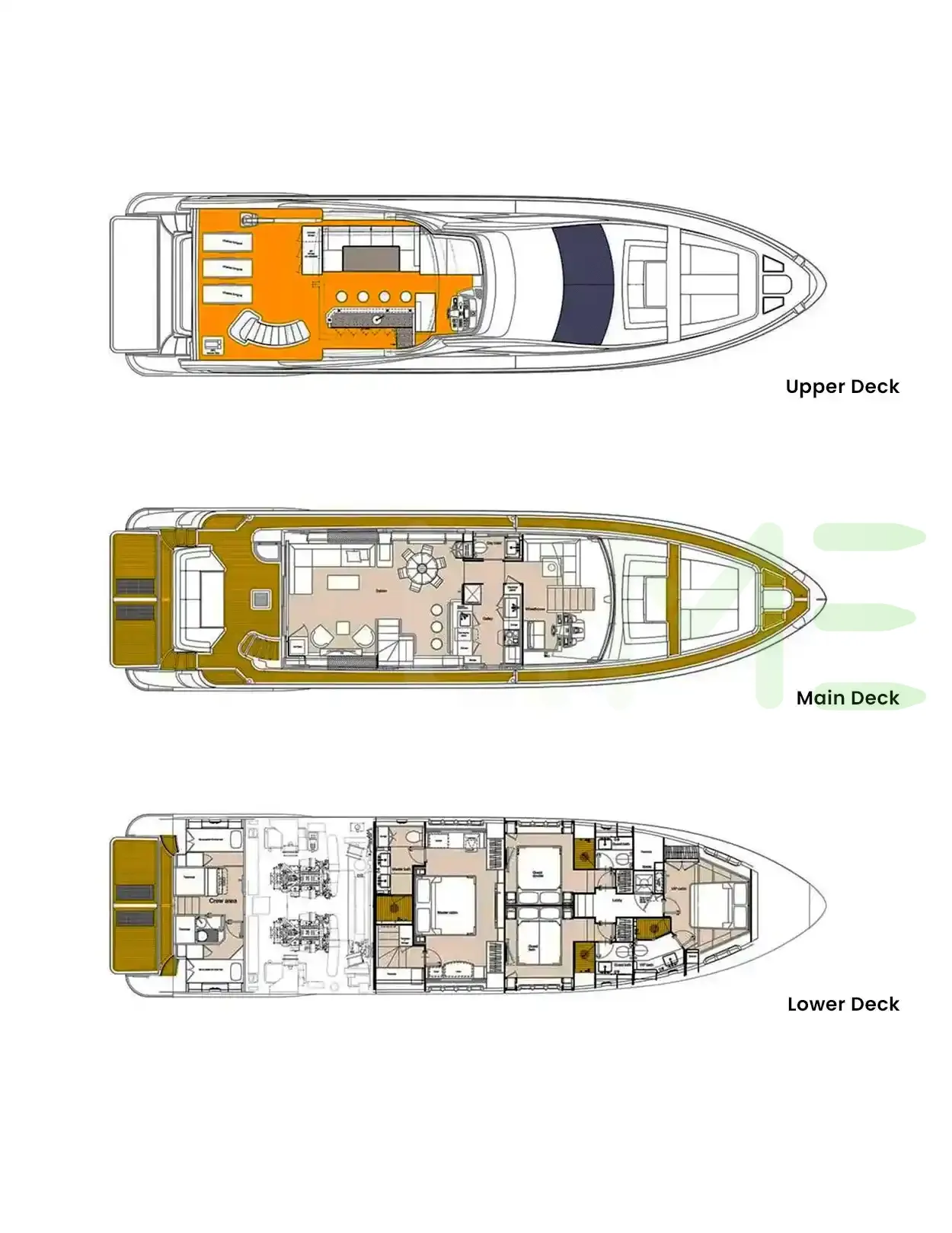 Request plans that include the layout of staterooms, guest areas, and outdoor spaces, as well as crew quarters and work areas.