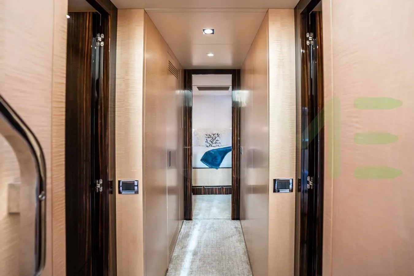 With a gross tonnage of 110, the OUR TIME yacht for charter provides ample interior space for enjoyment. OUR TIME offers accommodations for up to 9 guests in 4 lavishly appointed staterooms. She can also carry up to 3 crew onboard, including the Captain, to ensure a relaxed luxury yacht charter experience. The interior design by Salvagni Architetti exudes a sense of luxury, seamlessly blending comfort with style.