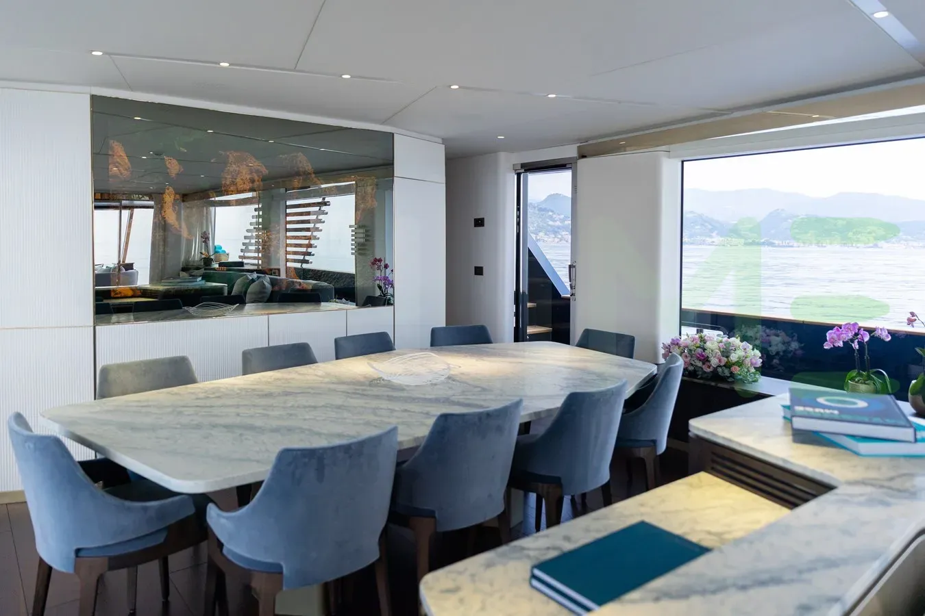 With a gross tonnage of 199, the PALMAX yacht for charter provides ample interior space for enjoyment. PALMAX offers accommodations for up to 10 guests . She can also carry up to 5 crew onboard, including the Captain, to ensure a relaxed luxury yacht charter experience. The interior design by Vincenzo De Cotiis Architect exudes a sense of luxury, seamlessly blending comfort with style.