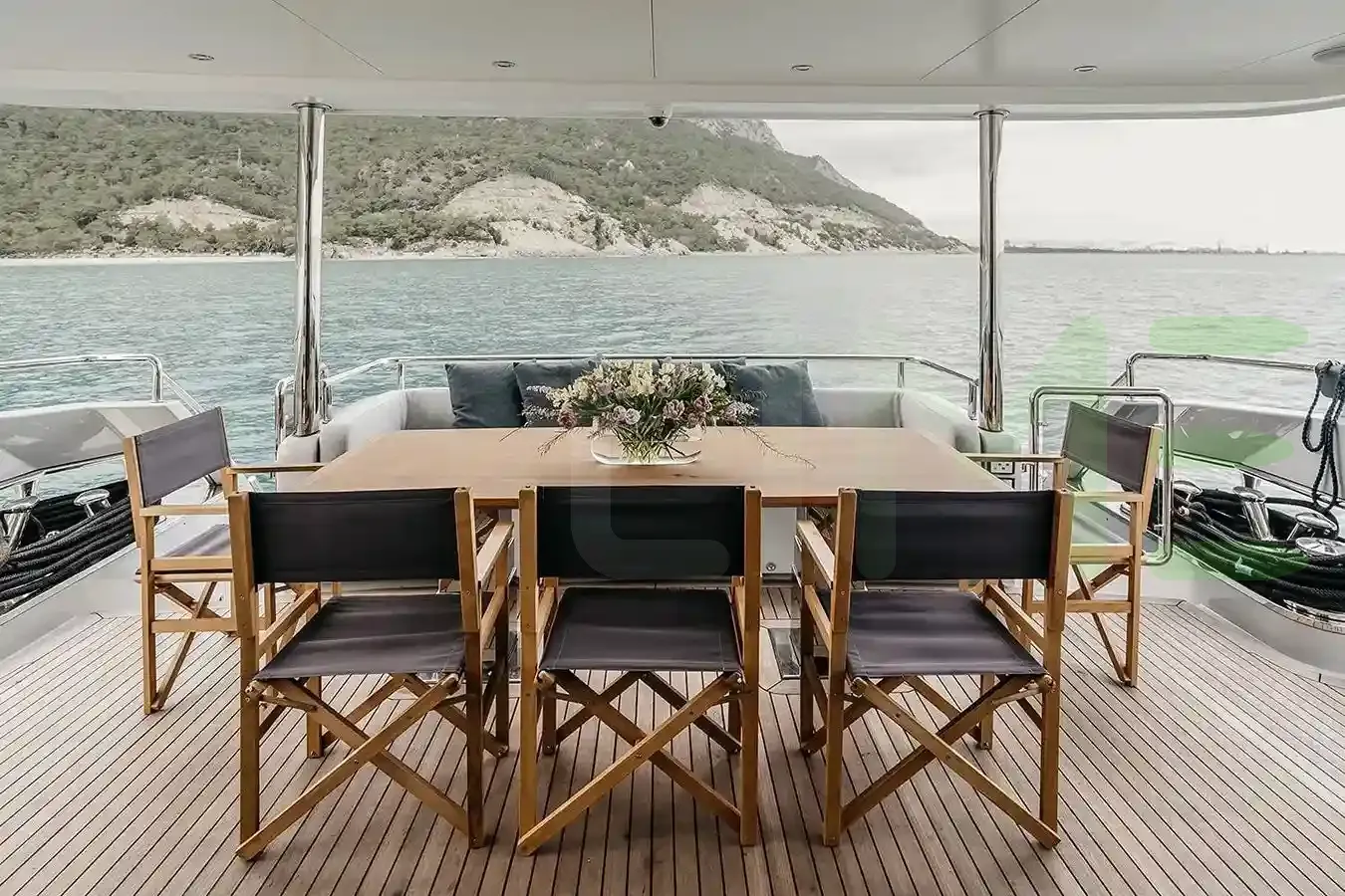 The exterior, designed by Bering Yachts, captures your attention with beautiful lines and impeccable craftsmanship. Whether you're lounging on the spacious decks or enjoying water sports in a secluded anchorage, the PAPILLON yacht for charter, built of Steel and Aluminium, offers a wealth of opportunities for relaxation and adventure.