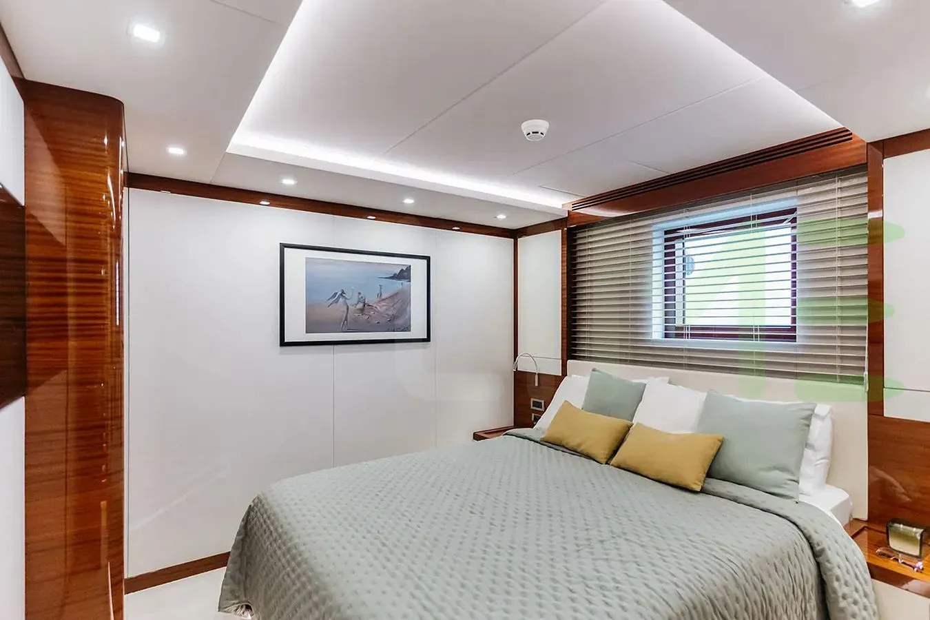 With a gross tonnage of 183, the PAPILLON yacht for charter provides ample interior space for enjoyment. PAPILLON offers accommodations for up to 10 guests . She can also carry up to 4 crew onboard, including the Captain, to ensure a relaxed luxury yacht charter experience. The interior design by Bering Yachts exudes a sense of luxury, seamlessly blending comfort with style.