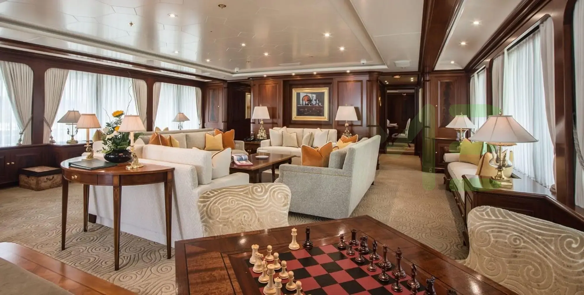 With a gross tonnage of 1,092, the PARAFFIN yacht for charter provides ample interior space for enjoyment. PARAFFIN offers accommodations for up to 14 guests in 6 lavishly appointed staterooms. She can also carry up to 17 crew onboard, including the Captain, to ensure a relaxed luxury yacht charter experience. The interior design by Larvor exudes a sense of luxury, seamlessly blending comfort with style.