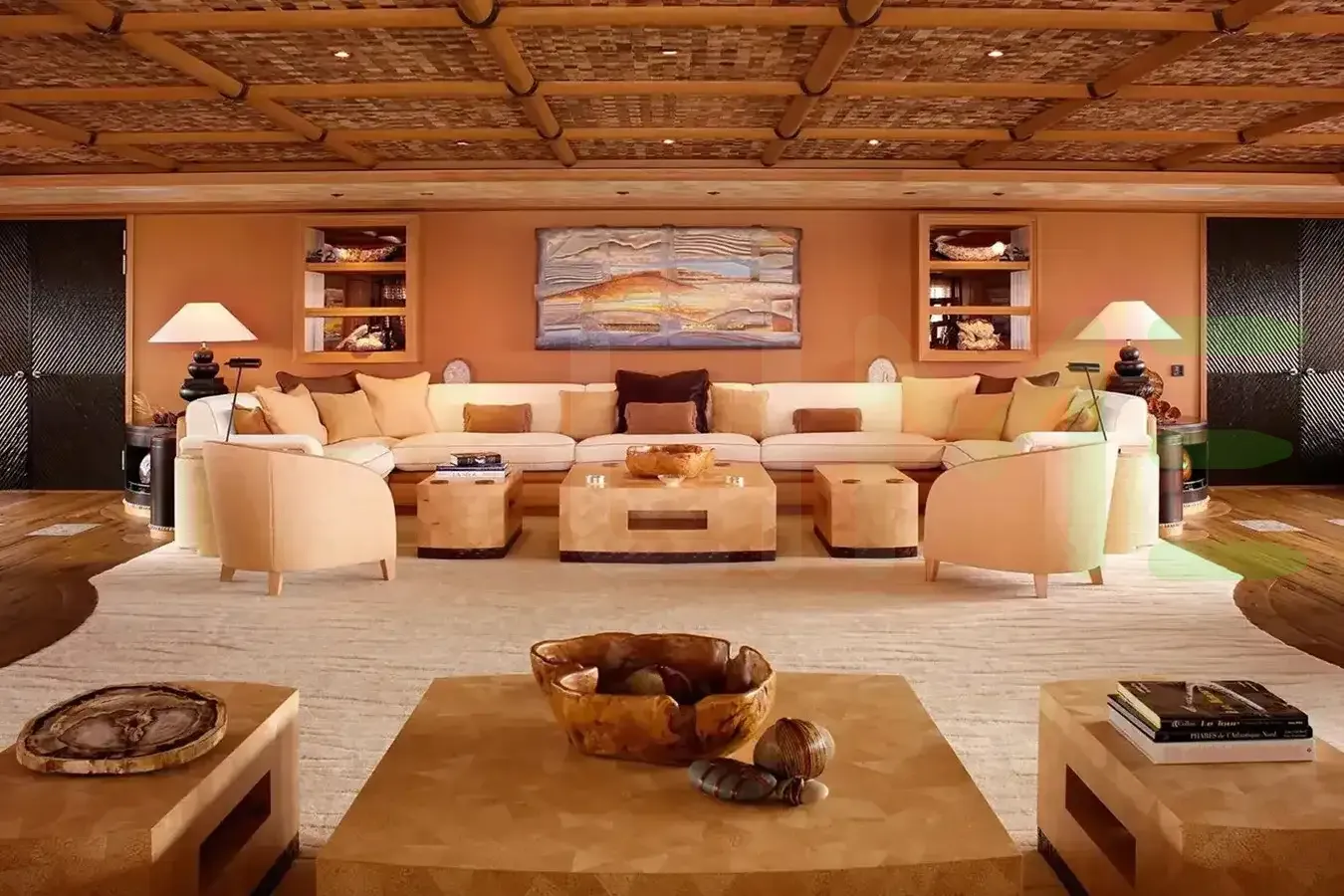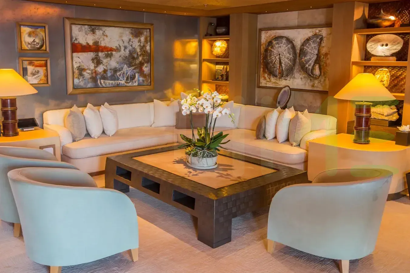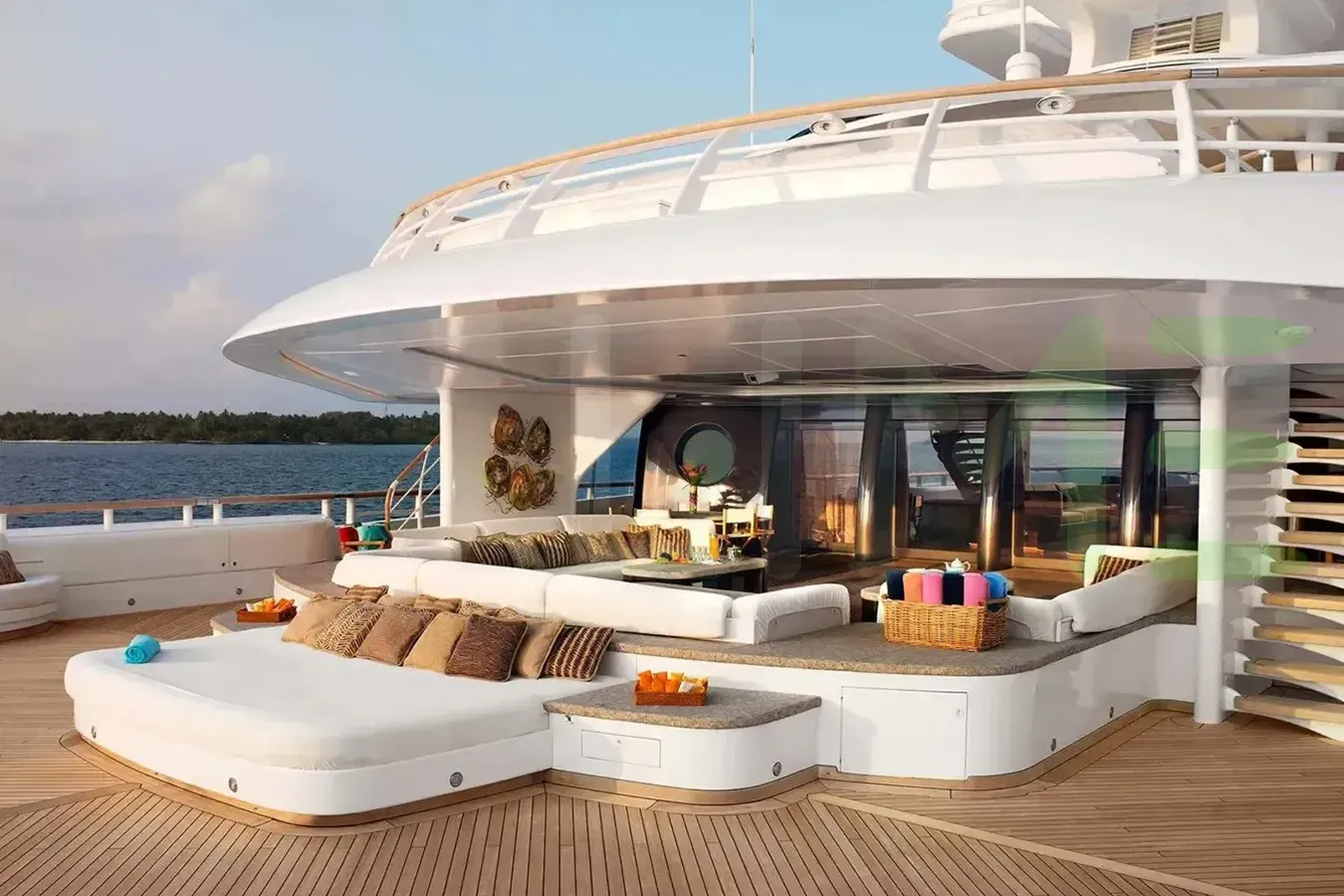 Her features include a dancefloor, spa, beauty salon, elevator, underwater lights, beach club, gym, WiFi and air conditioning.
