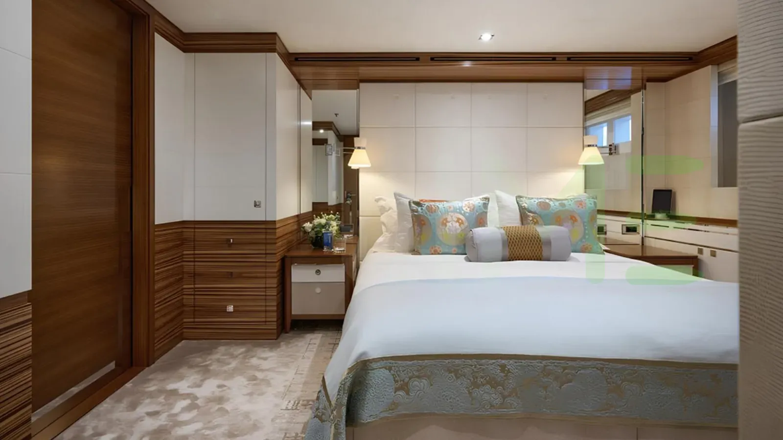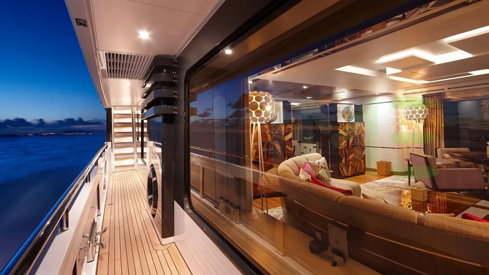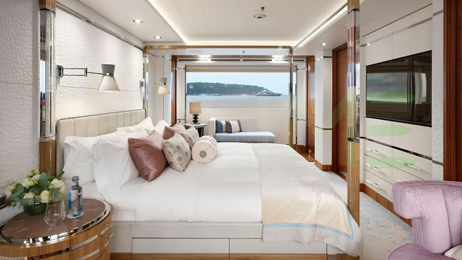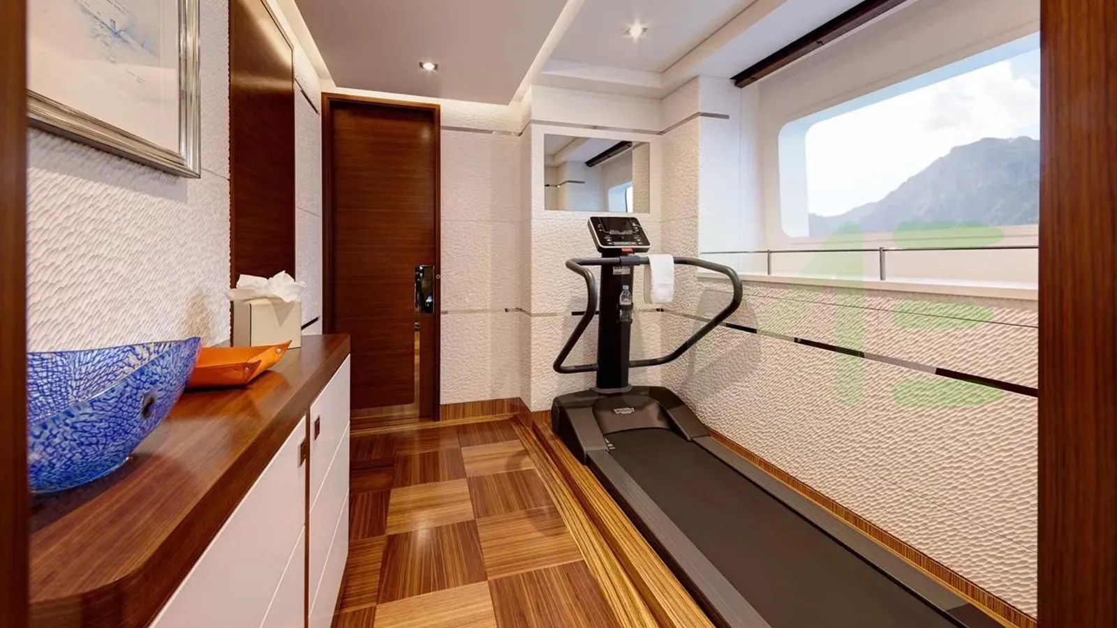 Her features include beauty salon, underwater lights, gym and air conditioning.