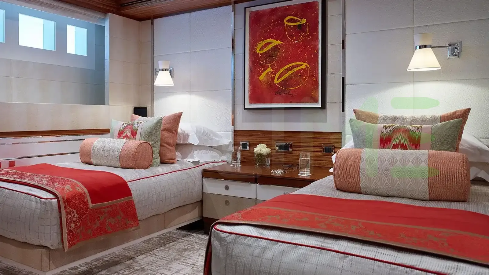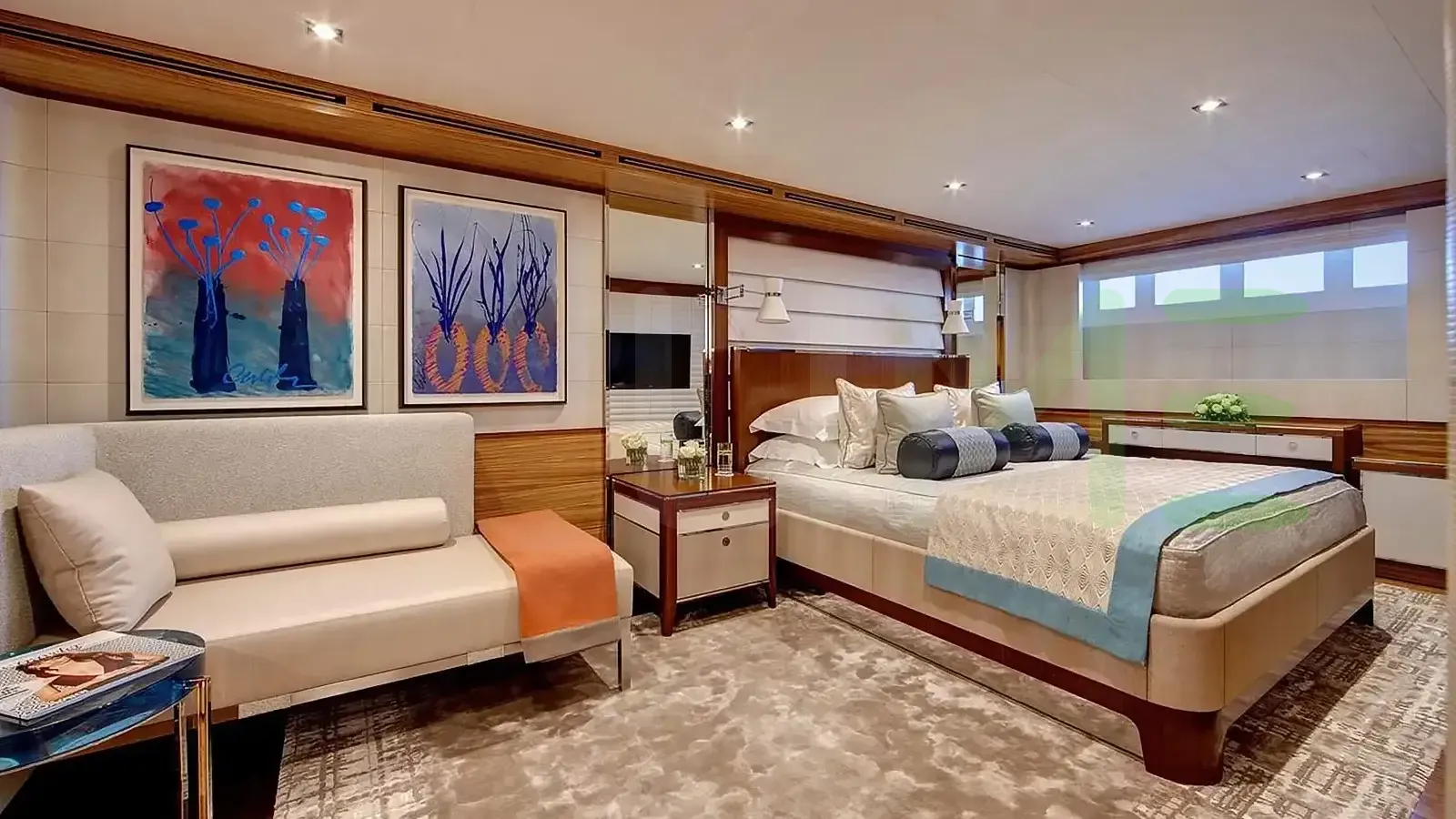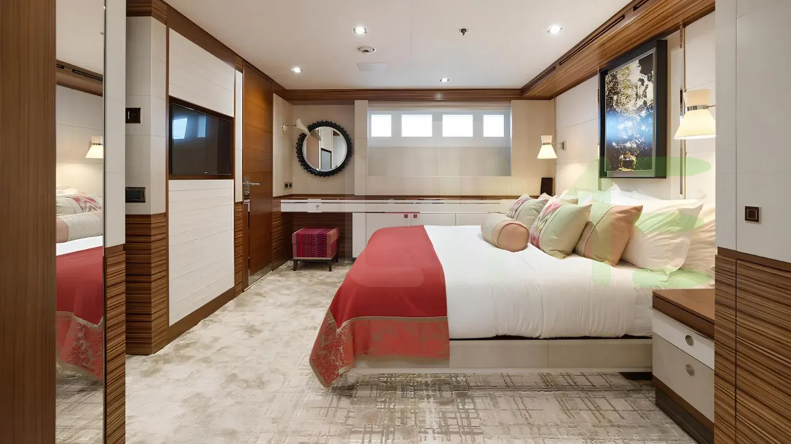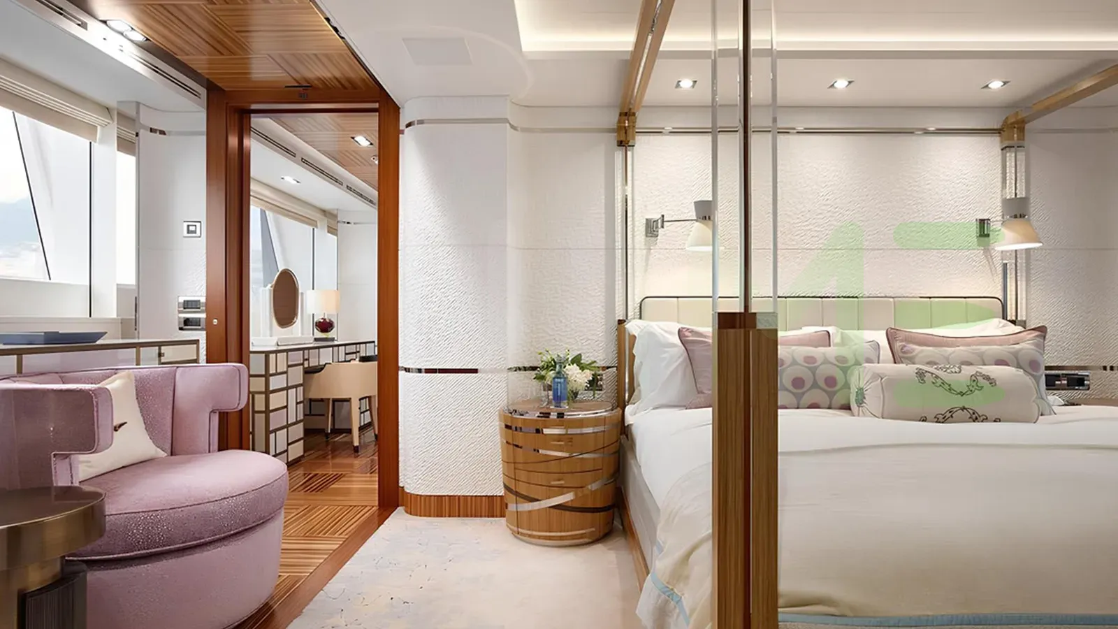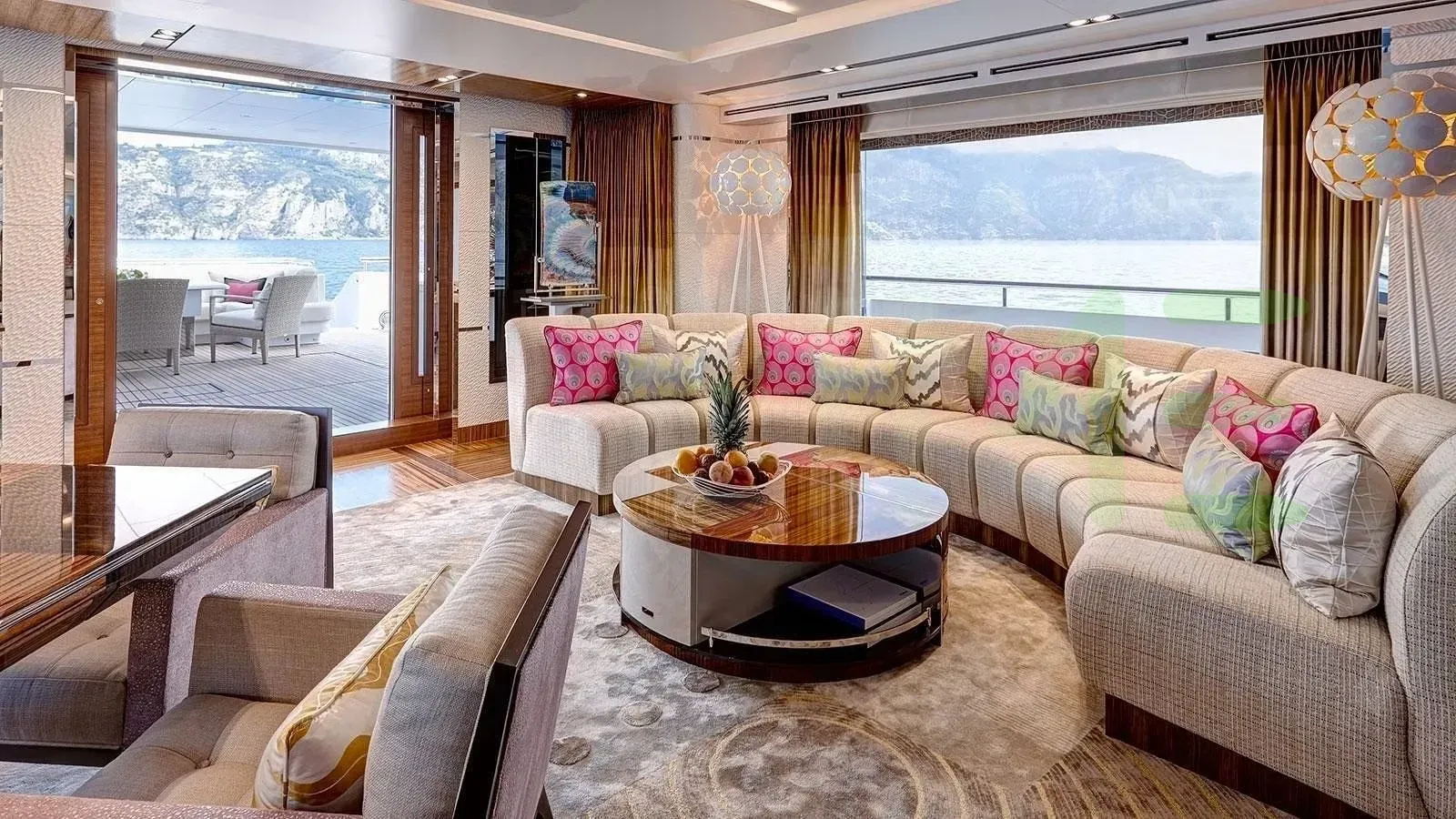 Her features include beauty salon, underwater lights, gym and air conditioning.